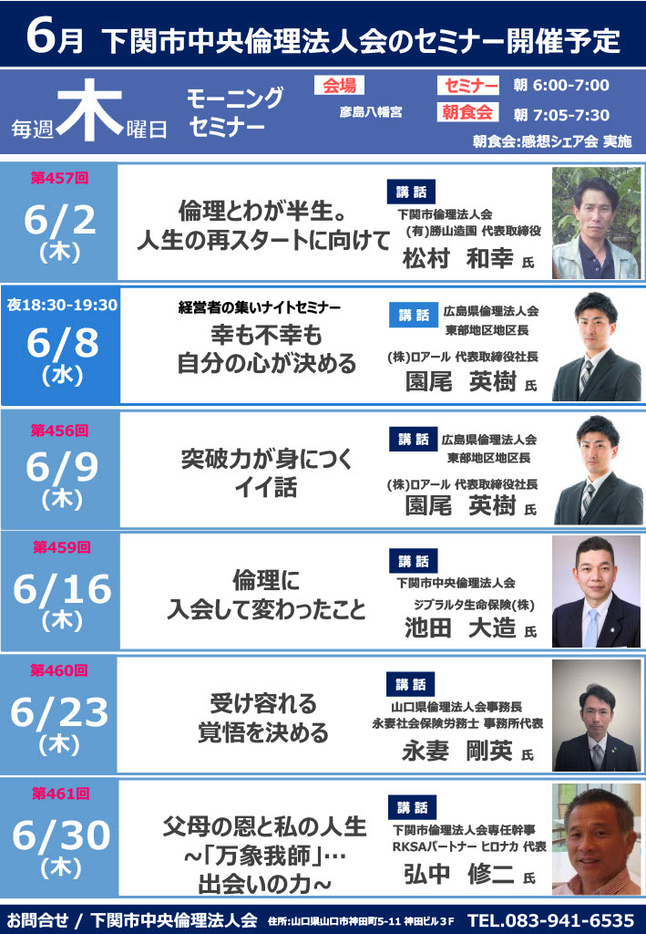 6月のモーニングセミナー会場も彦島八幡宮です!
