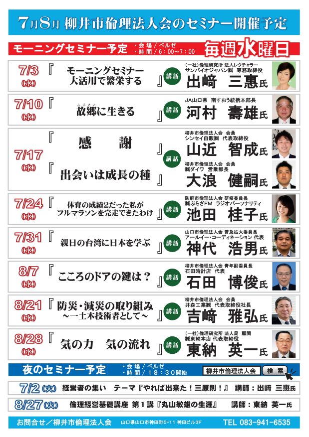 2019年7月1日(月) 7月-8月モーニングセミナー2ヶ月予定表