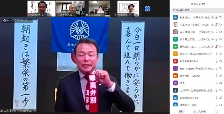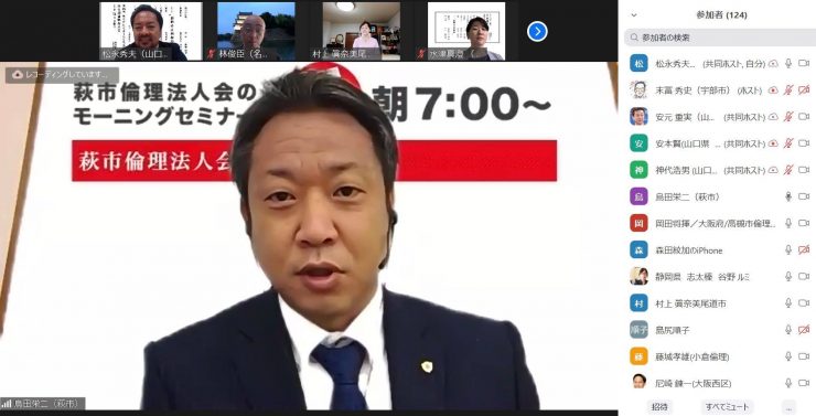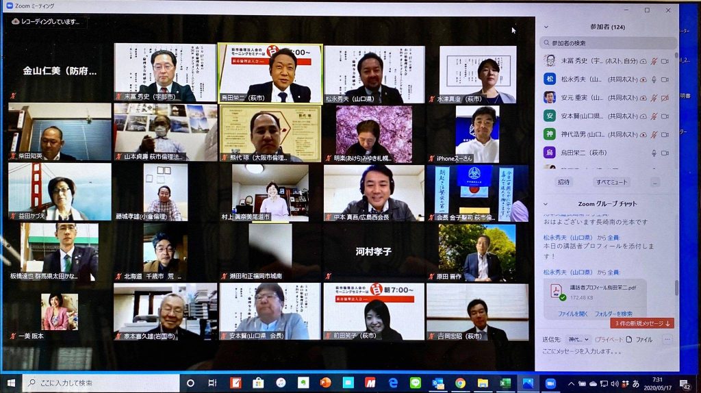 2020年5月17日(日) 萩市倫理法人会オンラインモーニングセミナー 講師:萩市倫理法人会 専任幹事 (有)萩新栄 代表取締役 烏田栄二氏 テーマ:倫理全力体感中