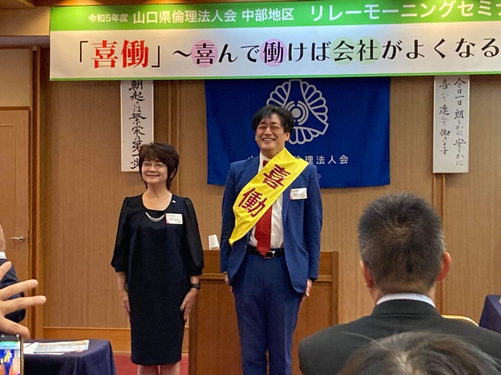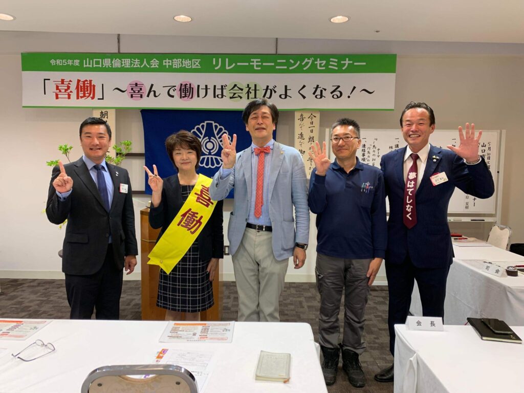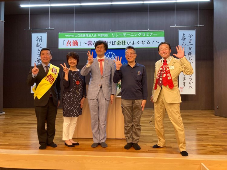 リレーモーニングセミナーが5/28㈰萩市倫理法人会モーニングセミナーからスタートしました。5/30(火)山口市、5/31(水)山口中央、アンカーの