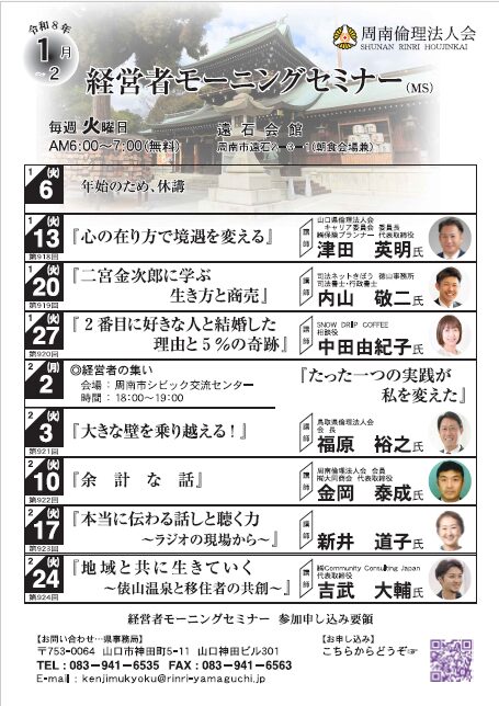 令和7年度 – 8年度 1月-2月 経営者モーニングセミナー 予定表