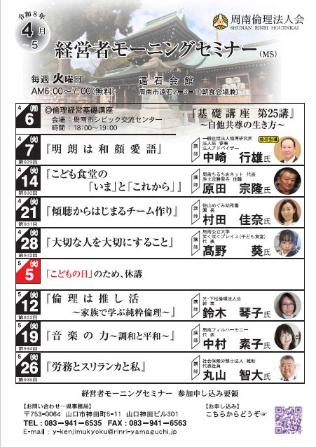 令和8年度 4月-5月 経営者モーニングセミナー 予定表