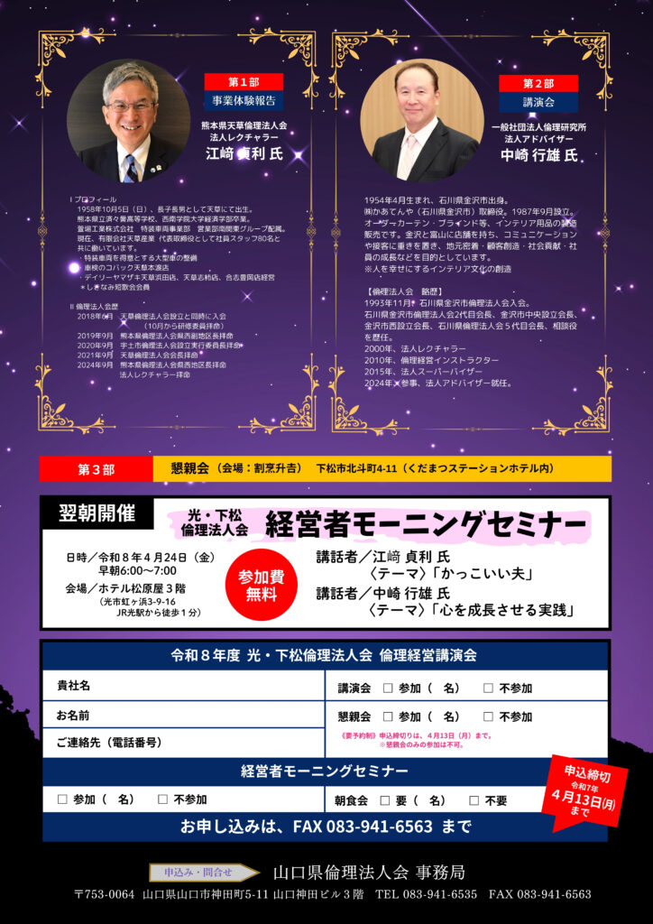 光・下松倫理法人会 令和8年度倫理経営講演会