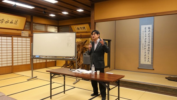 山口県出身の政治家や文人らに親しまれた「山口市菜香亭」において、山口市・山口市教育委員会の後援を得て、萩博物館特別学芸員である一坂太郎氏を講師にお招きし、「幕末維新の山口の秘話」という演題で講演会を行いました。