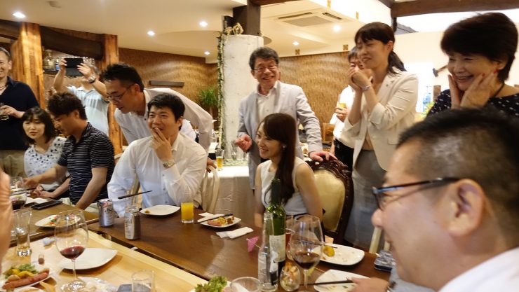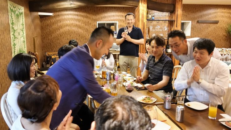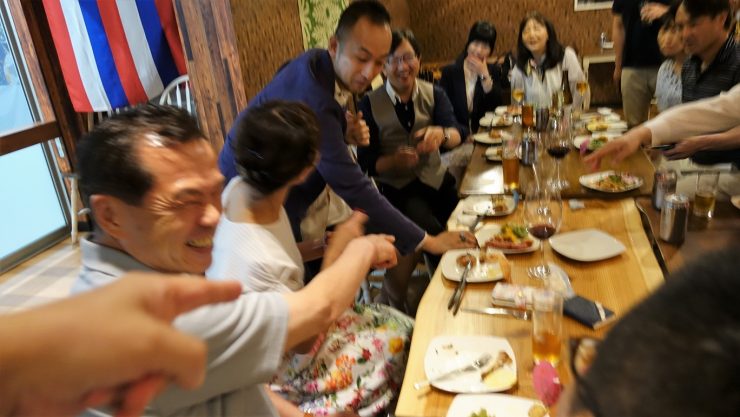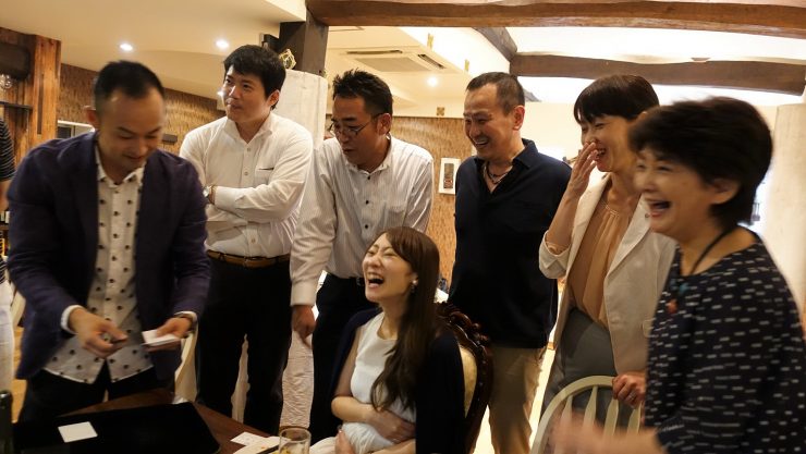 tysちぐまや家族でおなじみの雷太郎さんをゲストにお迎えして、マジックを披露していただきました。みんなの集中した視線でも誰一人タネを見破ることができず、驚きの表情ばかり!妊娠中の藤澤香織さんにも久しぶりに参加してもらい終始笑い声が絶えない交流会になりました。雷太郎さんに連絡を取り次いでいただいた海鮮長州湯田店の河内山さん、ありがとうございました。