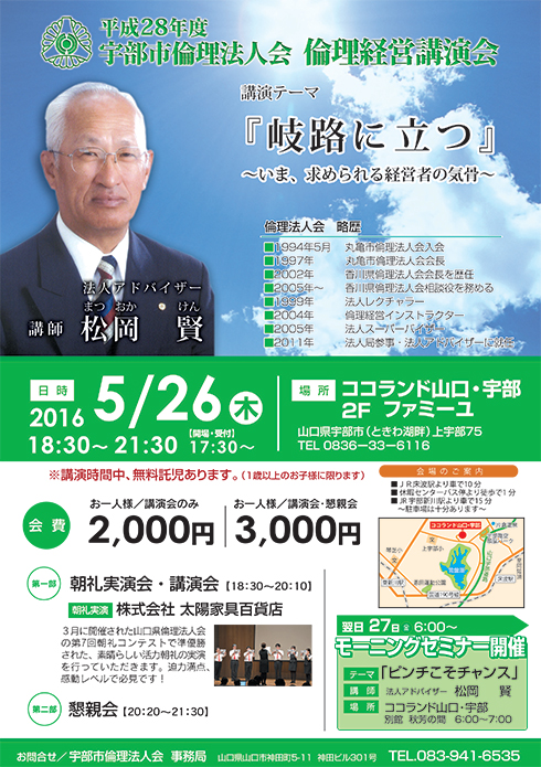 平成28年度倫理経営講演会 講師:法人アドバイザー 松岡 賢氏 テーマ:「岐路に立つ」