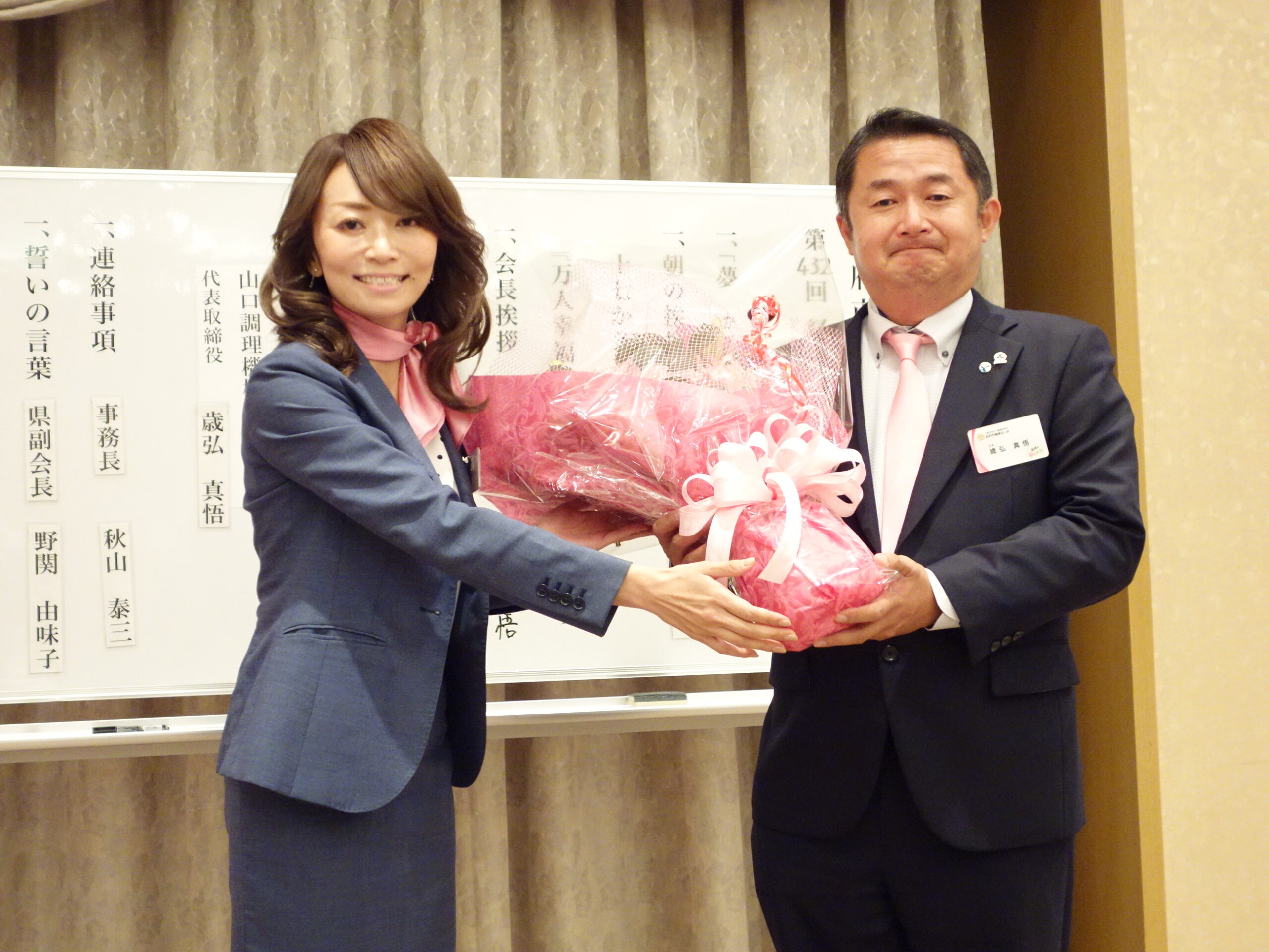 専任幹事拝命時、最後の日に、自信持って、笑顔で「あーしんどかったな」と言えるよう、本気で取り組む事を決めた。皆さんのお陰で、最高の実践報告が出来た。防府市倫理法人会の専任幹事になれた事、とても幸せに思っておりますと感動のスピーチを頂きました。