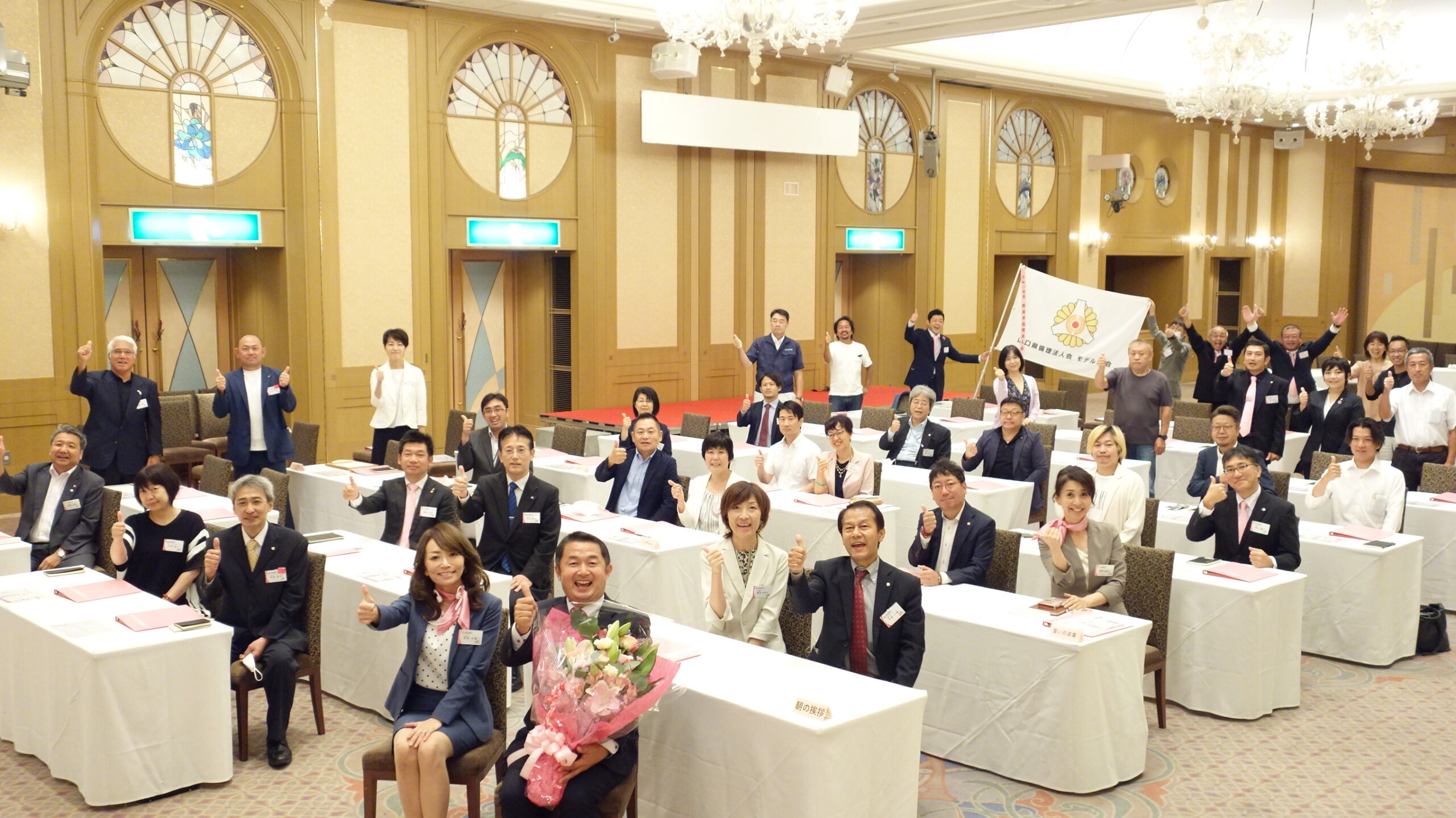 ※.防府市倫理法人会では、新型コロナ感染症予防対策としまして、感染拡大予防ガイドラインを遵守し、来場者の検温・除菌対応・マスク着用・会場の常時換気・ゆとりあるスペース確保(定員200名の会場で開催)を実践しております。