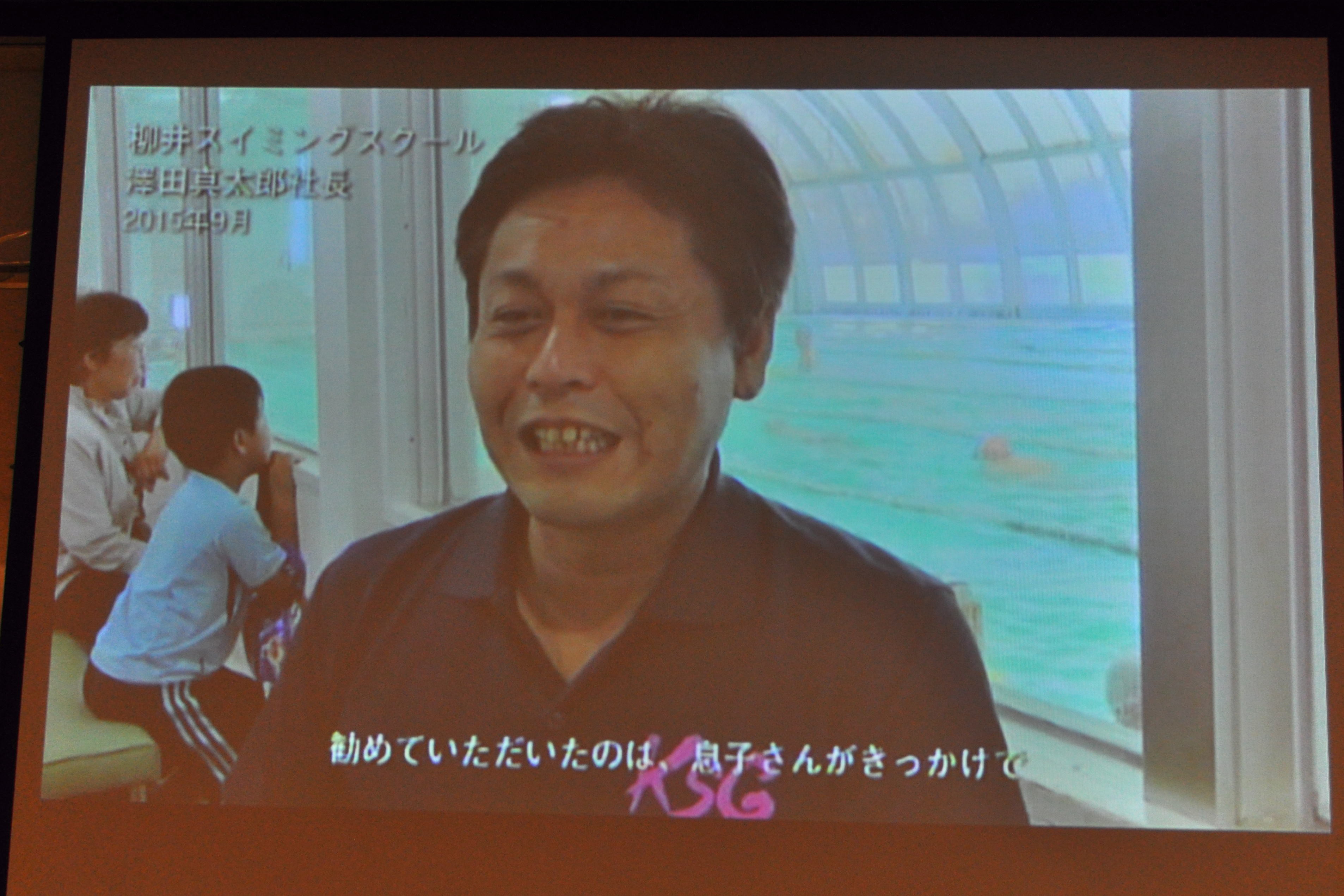 長岡さんは柳井市の隣接田布施町のお住まい、とても身近な映像が流れます。日頃水泳を練習をする「柳井スイミングスクール」さんは、柳井市倫理法人会の会員企業、澤田真太郎社長のインタビューが冴えわたります。こんな身近に世界記録保持者がいるという驚きと感動に包まれました。