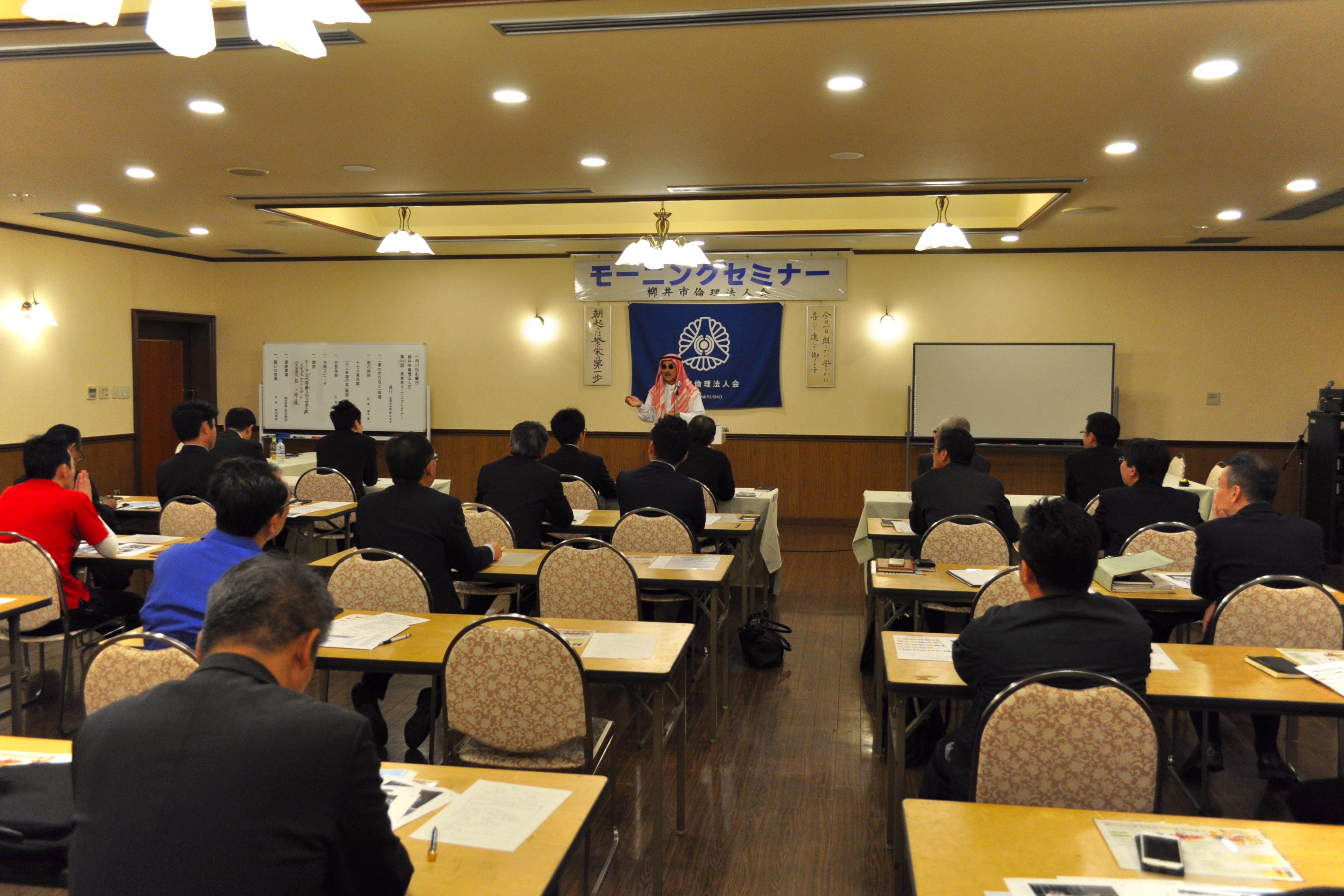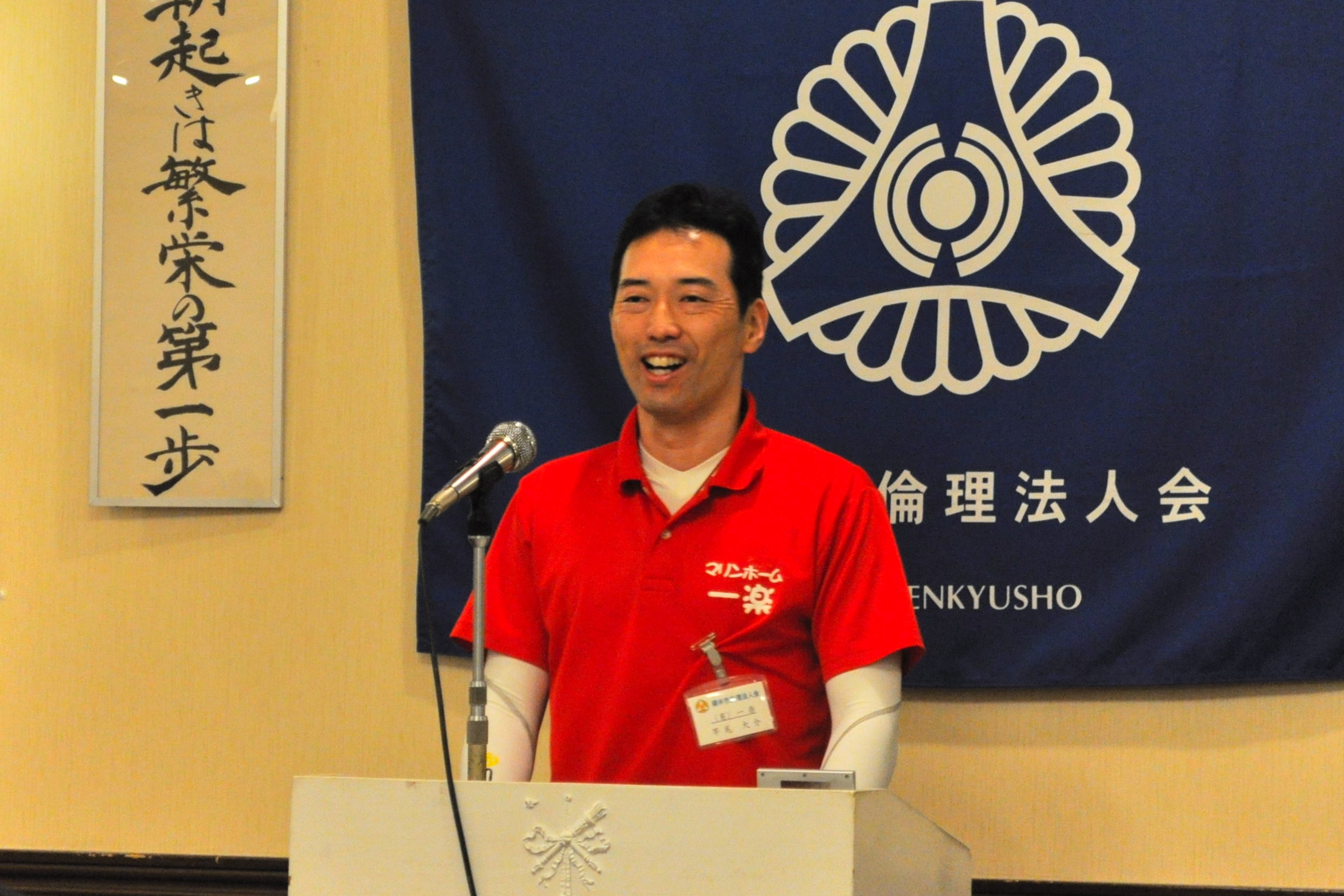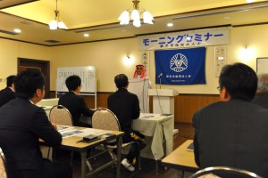 4月23日~24日と富士教育センター(富士研)にて開催された、プランニングセミナーに参加された竿尾 大介氏の感想発表がありました。『今でも気持ちが上がってる!』と元気いっぱいお話いただきました。共に参加された國本 豊氏と6月22日の第1047回モーニングセミナーにて体験発表をしていただく予定です。お二人から富士研のお土産をいただきました。