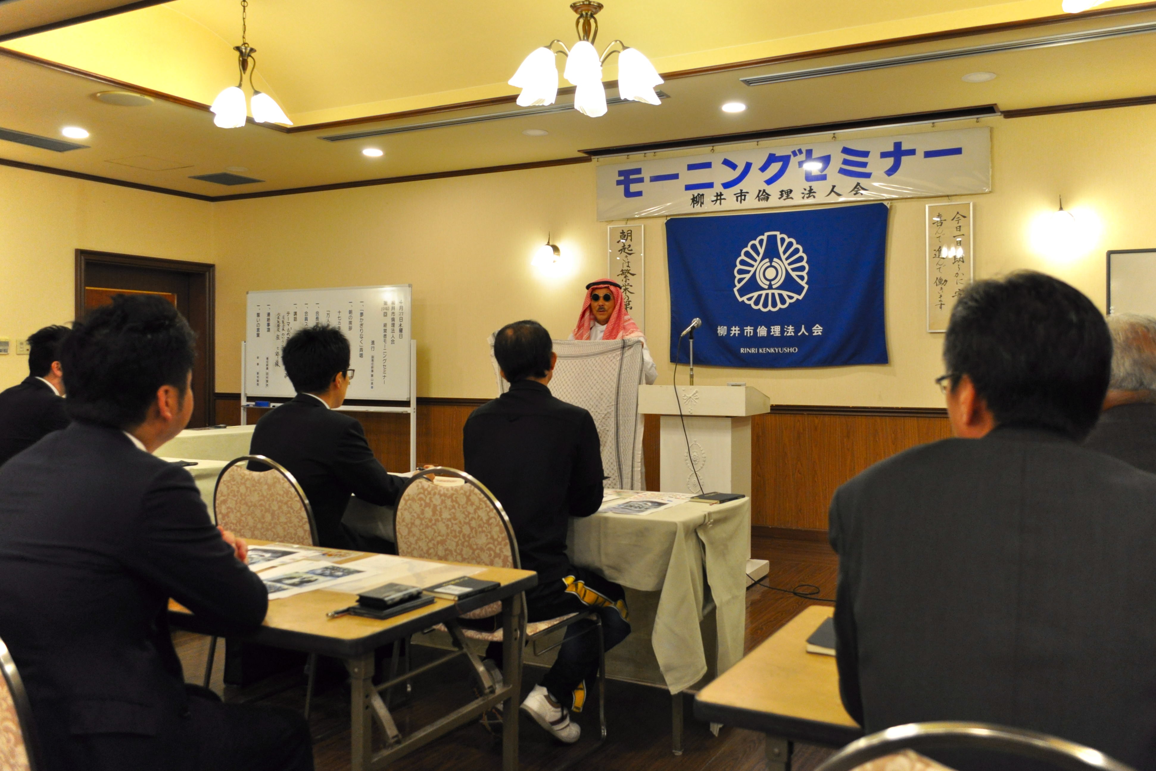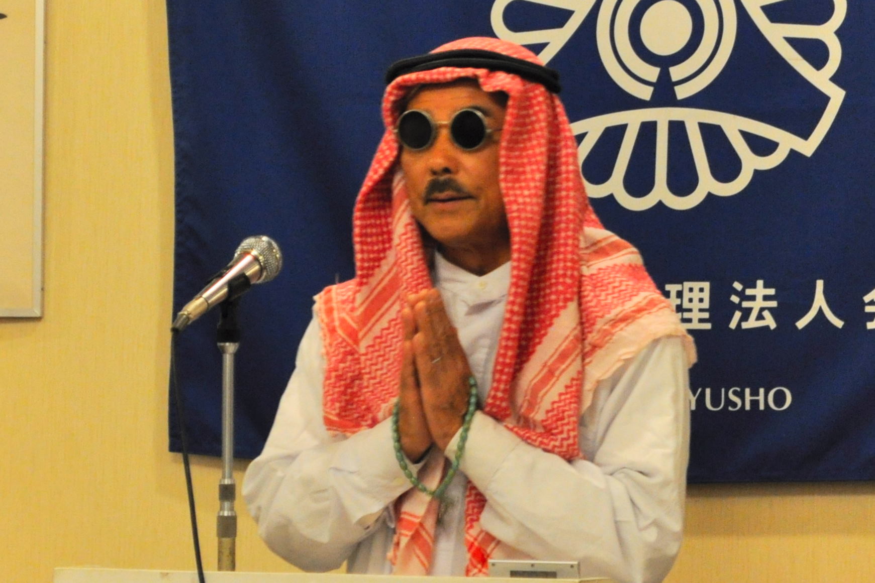 中東の民族衣装で登場したKATSURA氏、今日は何が起こるのか!?興味深々です。世界を旅した桂氏、その国は40を超えるとのこと、各国で出会った文化の違いを楽しくご披露頂きました。特に、イスラム諸国の話は興味深く『ラマダン』(断食)や『モスク』(寺院)、『ムハンマド』(預言者)などわかりやすく説明いただき、まるで海外旅行にでかけたようでした。