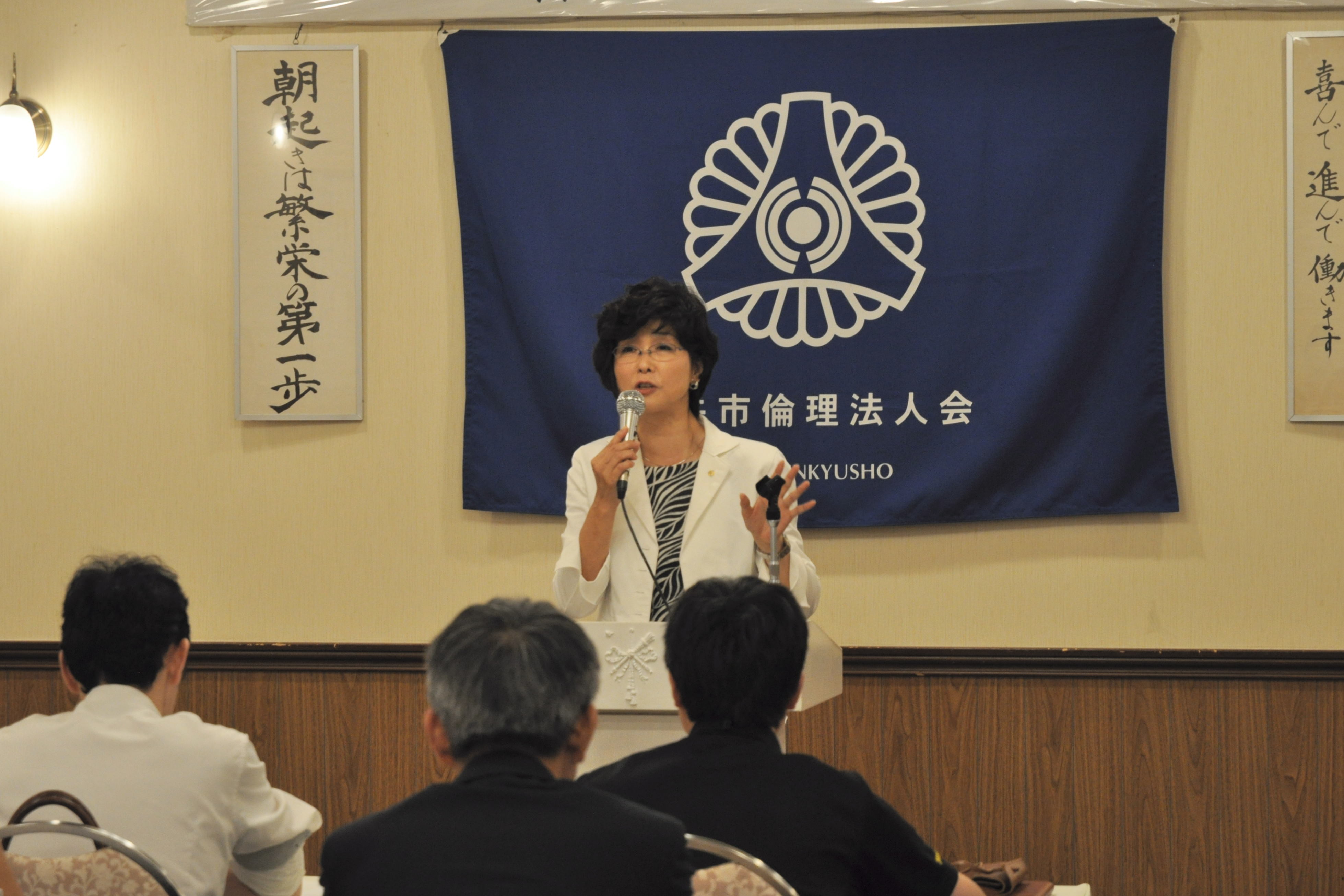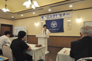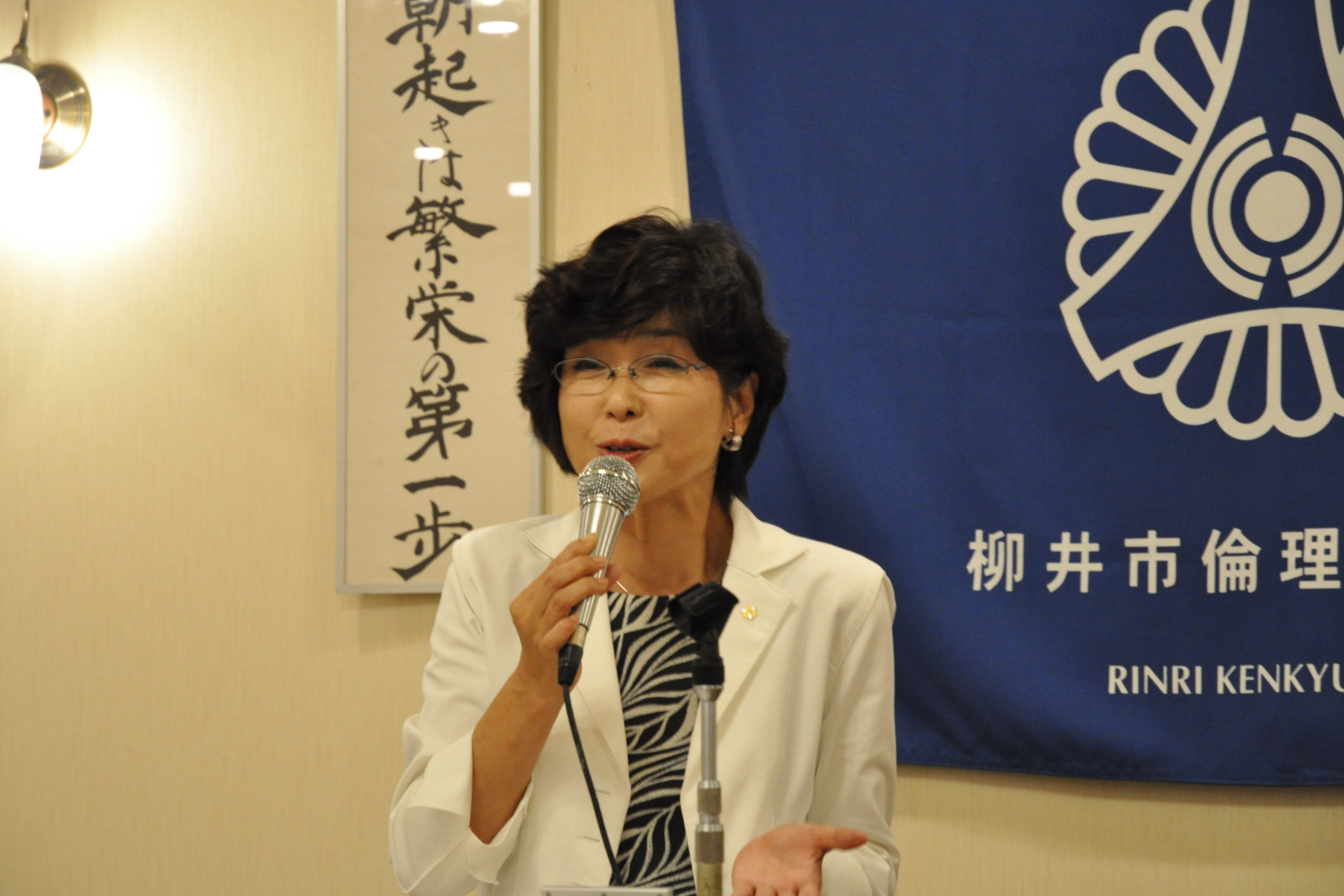 7月27日に行われた第1052回柳井市倫理法人会経営者モーニングセミナーは、「嫋やかに 手弱女に成りたい私」と題して、下関市中央倫理法人会 女性委員長 有限会社エヌ・アルファ 代表取締役 二宮 多美枝氏の講話を聴きました。