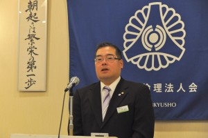 8月31日に行われた第1057回柳井市倫理法人会経営者モーニングセミナーは、「縁に想う」と題して、山口県倫理法人会 研修委員長 有馬 貴志 氏の講話を聴きました。