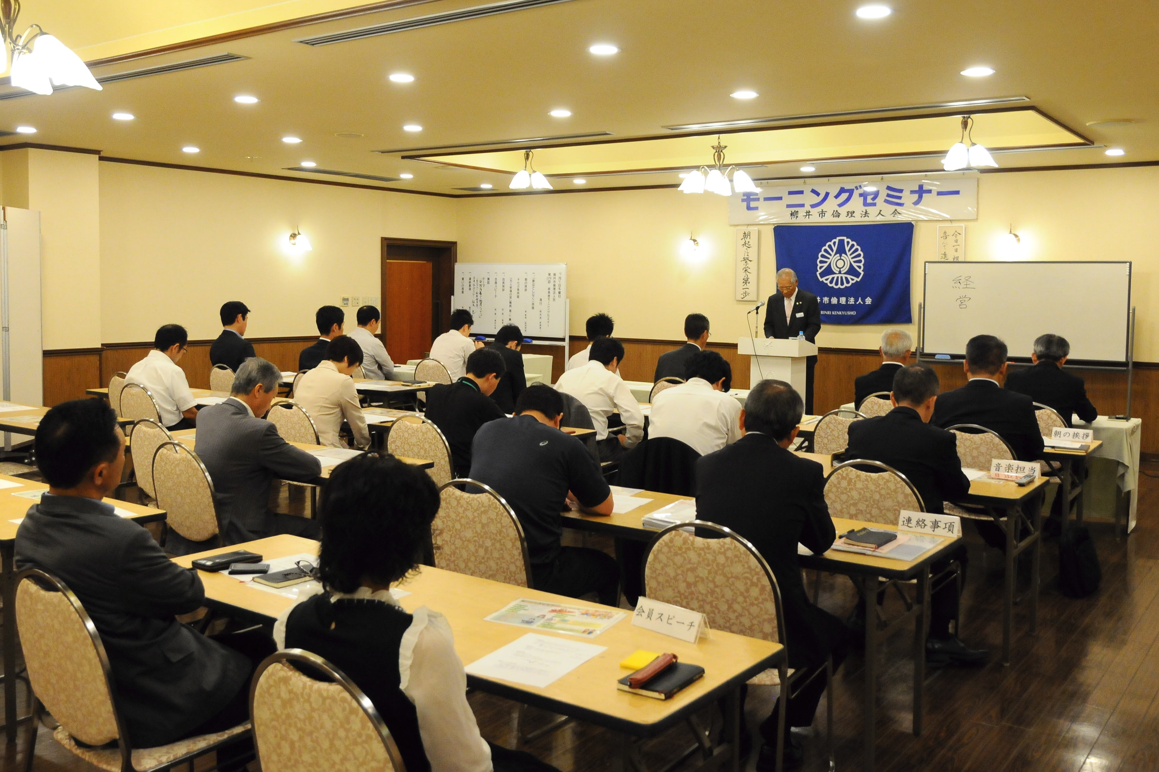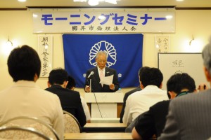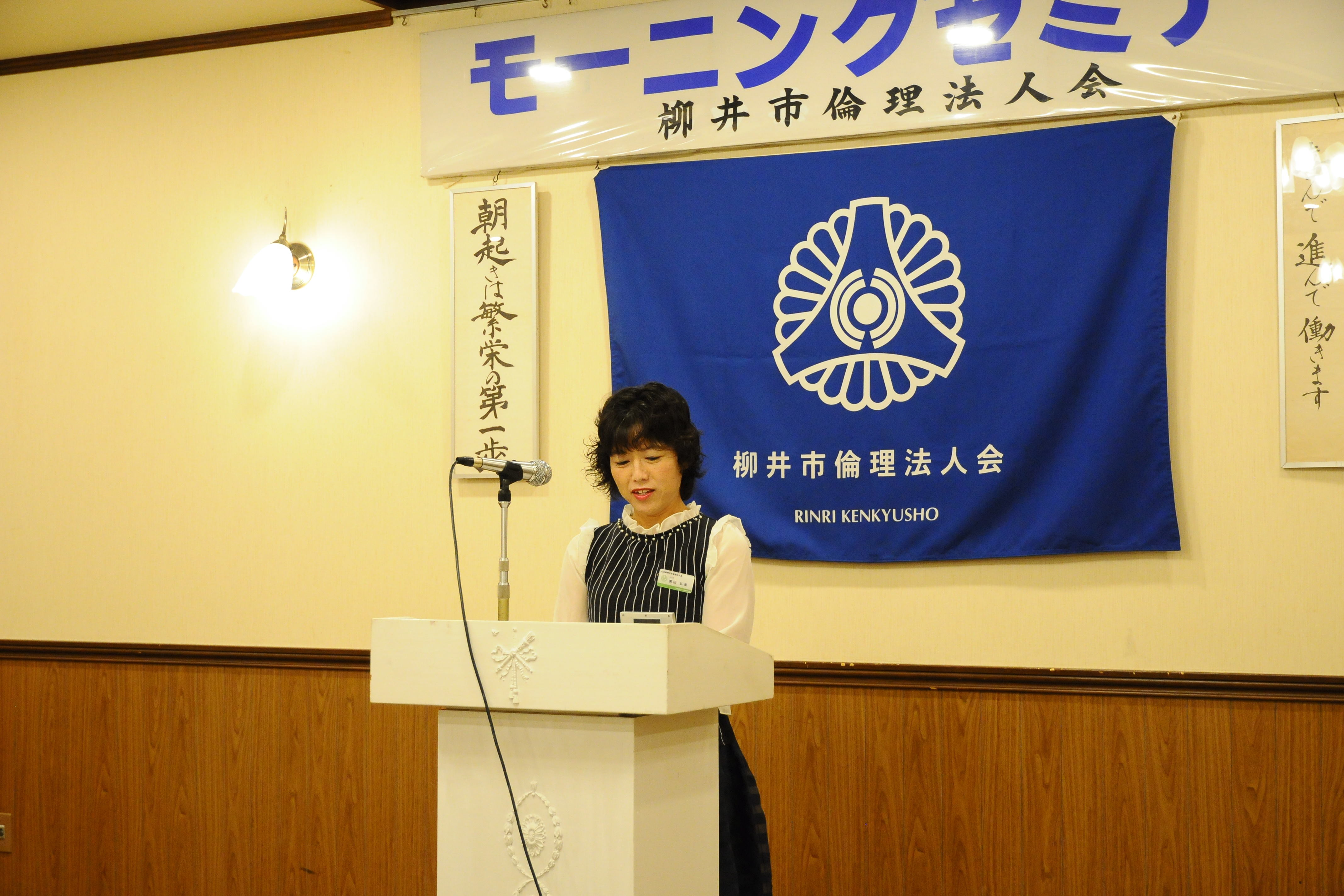 講話に先駆けての会員スピーチは、花企画代表 廣田弘美氏。倫理との出会い、今後の抱負をお話頂きました。廣田氏には、9月28日(水)モーニングセミナーにて、「花と私」と題した講話をいただく予定です。
