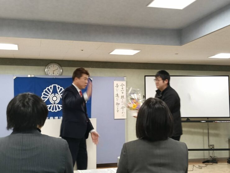 昨日の倫理経営講演会に続き、植木 秀人法人レクチャラーと倫理研究所・監事である田畑章さんの講話。