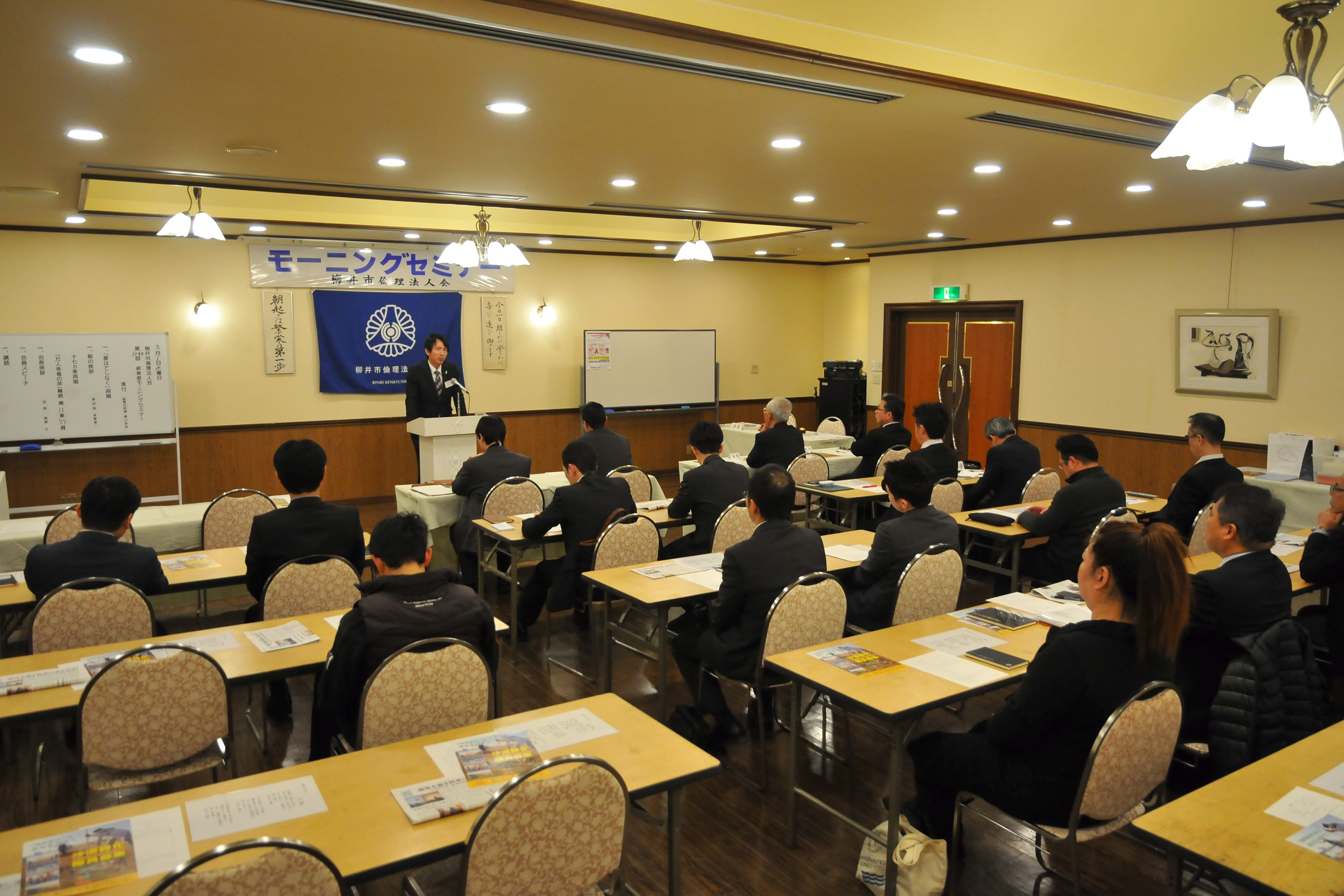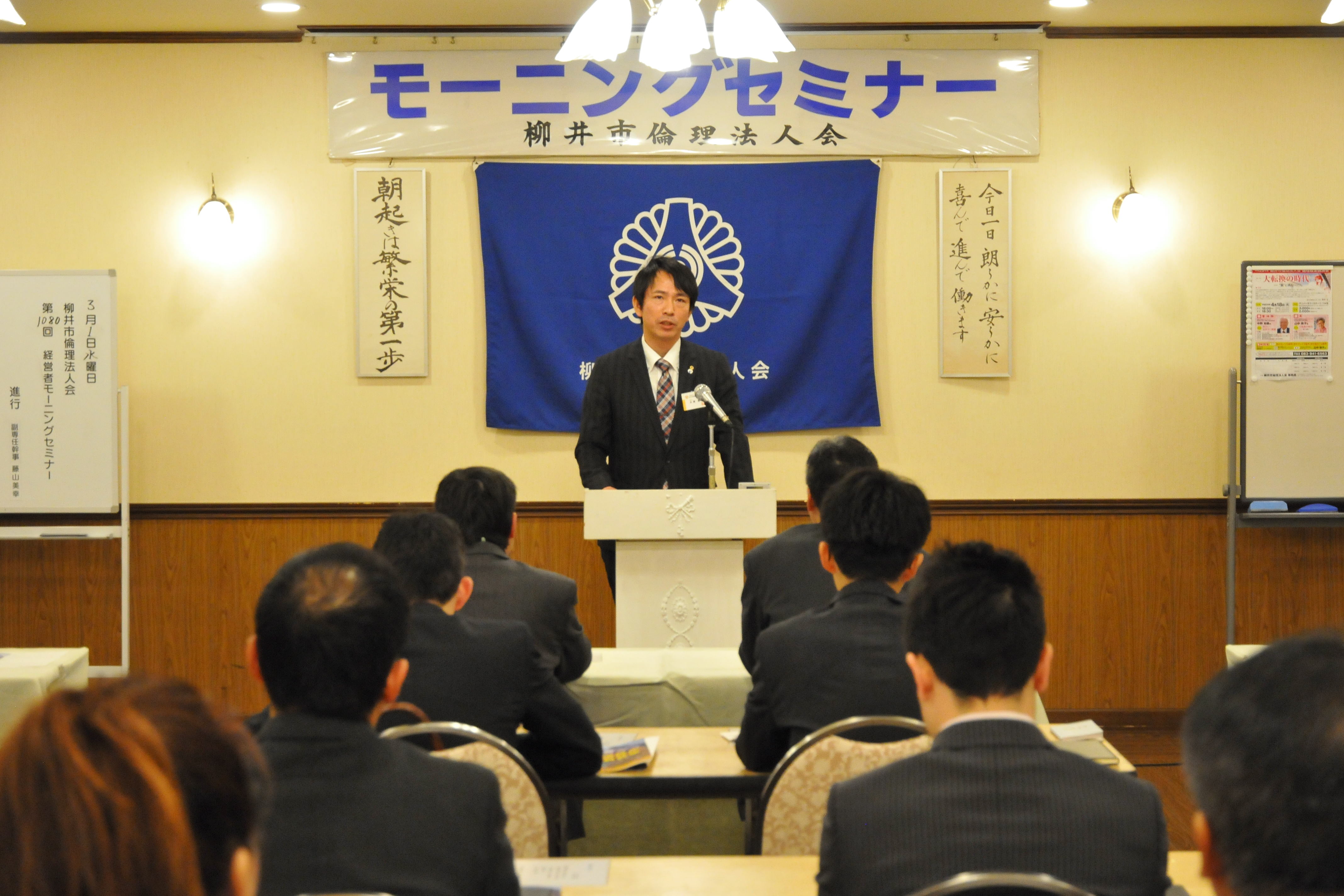 3月1日に行われた第1080回柳井市倫理法人会経営者モーニングセミナーは、「逃げちゃダメだ!」と題して永妻剛英 山口中央倫理法人会事務長(永妻社労士事務所 代表)の講話を聴きました。