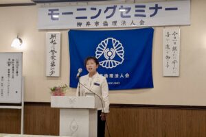 第1490回モーニングセミナーは柳井市倫理法人会 幹事(オフィスちゅらじま代表)小泉小枝子様に「倫理に出逢って」と題してご講話をいただきました。