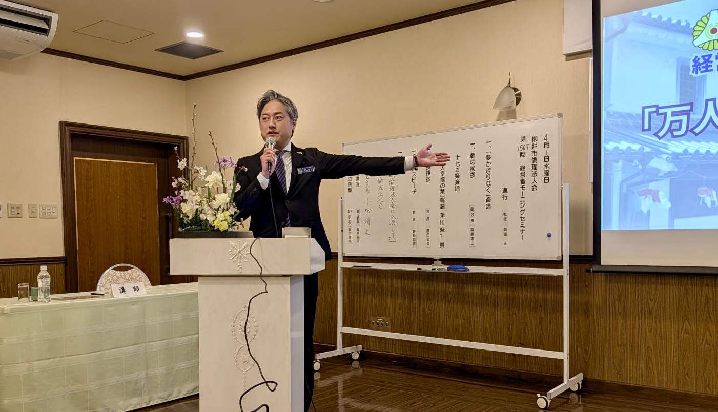 第1507回モーニングセミナーは山口県倫理法人会 研修委員長(オフィス小田 代表)小田靖之様に「倫理法人会に入会して」と題してご講話をいただきました。