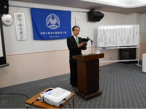 第16回山陽小野田市モーニングセミナーは、山口中央倫理法人会広報委員長で、はり・灸 心正堂 院長 西正泰氏に『人生は陰と陽―鍼灸師へ』と題してご講話 頂きました。