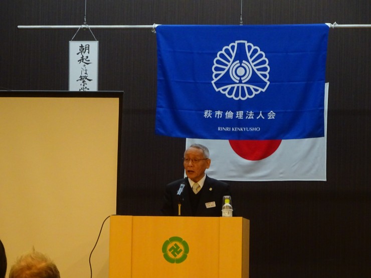 萩市倫理法人会研修委員長の河村大輔氏の講話でした。先進的なものかと思いきや、ずっと備わっている人間の機能の使い方で可能性をグッと高める確実な方法に、ワークを交え実体験を通し気づく倫友の姿。