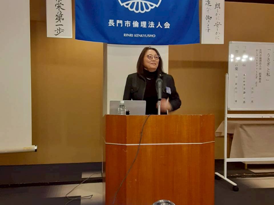本日の講話は長門市内で「おしゃべりカフェうさぎ」を経営されている石井一惠氏。長門市倫理法人会でも副事務長として活躍されている石井氏のお話から、看護師として培ってこられた経験を「地域の居場所づくり」という形で生かされている姿勢に強い感銘を受けました。単なるカフェ運営ではなく、高齢者が安心して集い、交流し、元気を保てる場をつくるという想いには、深い使命感と優しさを感じます。特に認知症予防に力を入れ、これからも元気な高齢者が集まる場所にしたいという言葉は、地域の未来を見据えた力強いメッセージでした。人と人をつなぐ温かい拠点として、今後さらに多くの方の支えになる存在になると感じました。