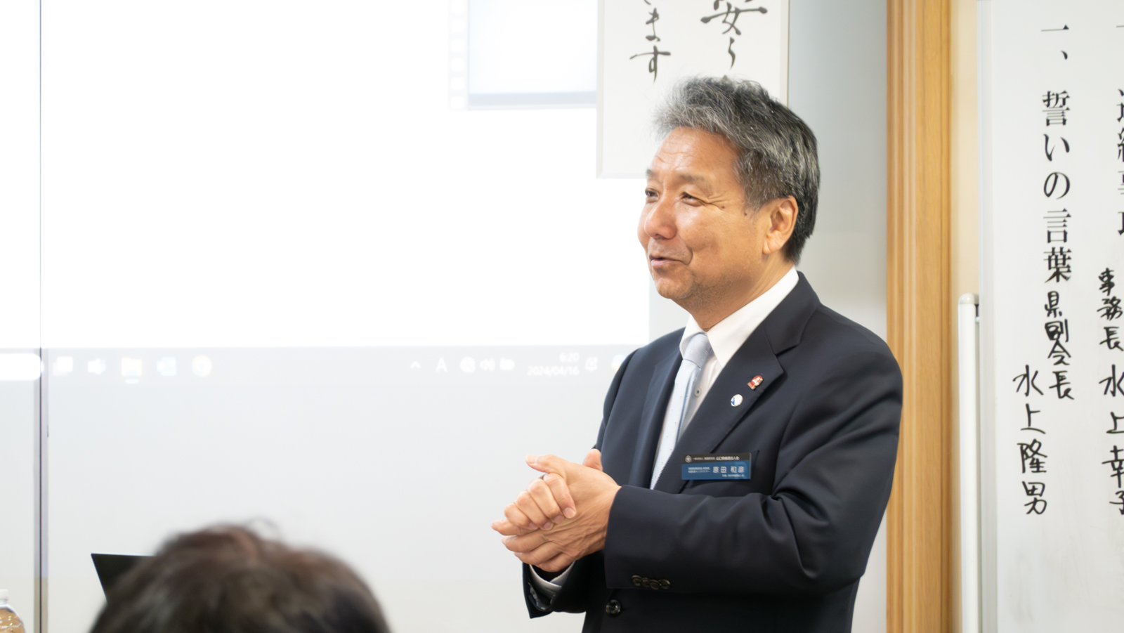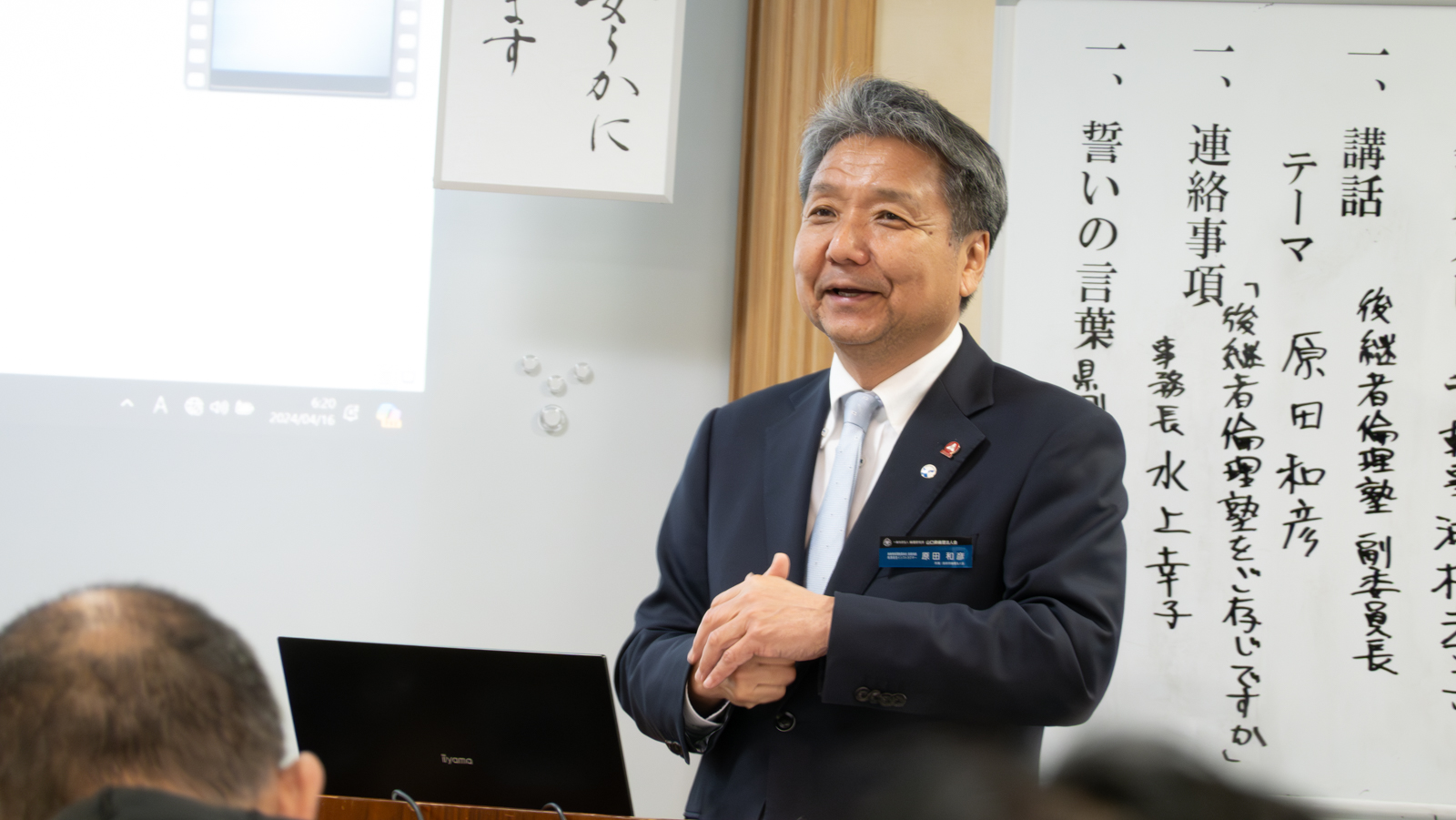 そして、今日の講師は、山口県倫理法人会 後継者倫理塾委員会 原田和彦 副委員長です。