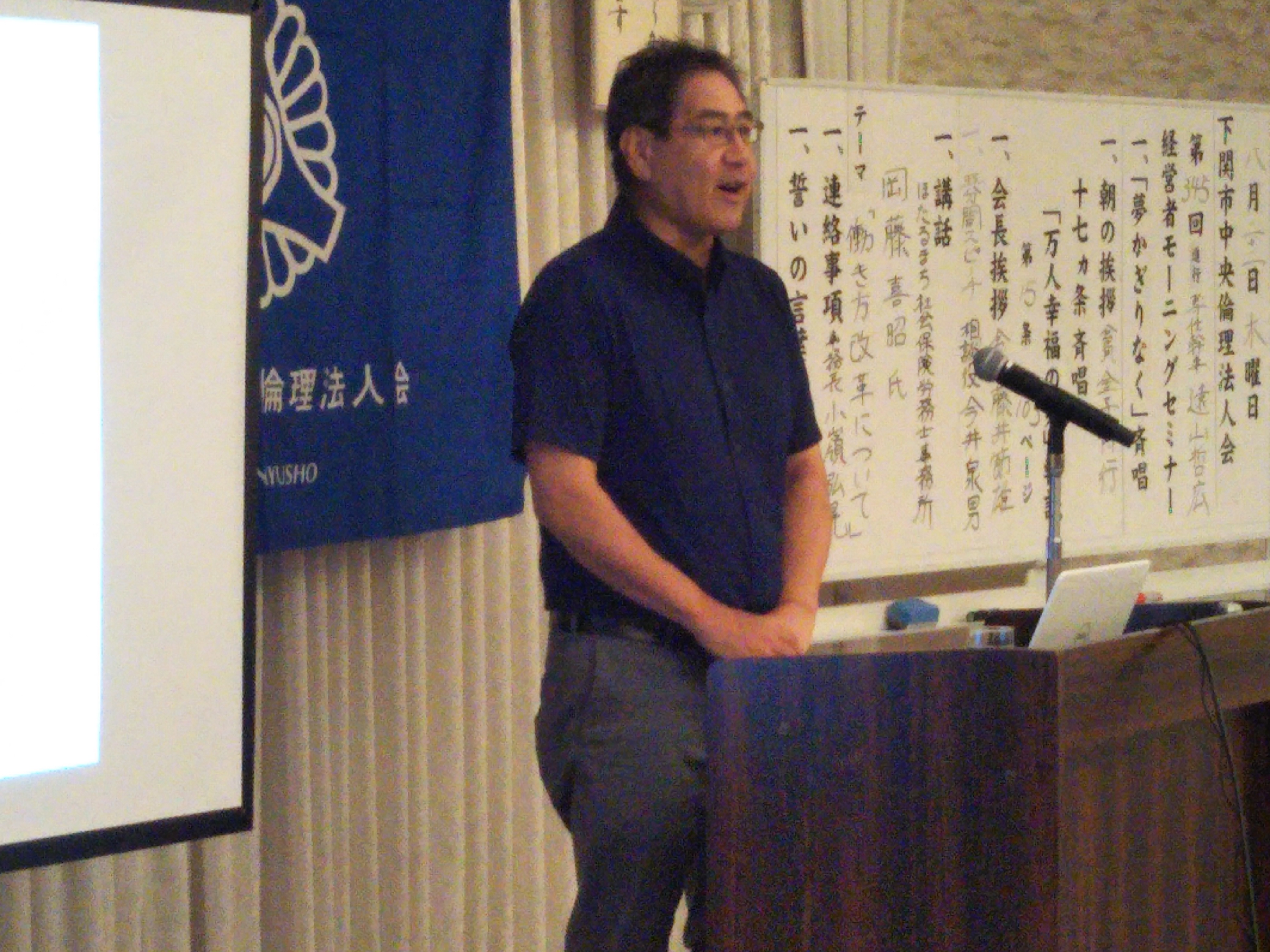 2019年8月22日(木) 第345回MS 講師:ほたるまち社会保険労務士事務所 岡藤 喜昭 氏 テーマ:働き方改革について