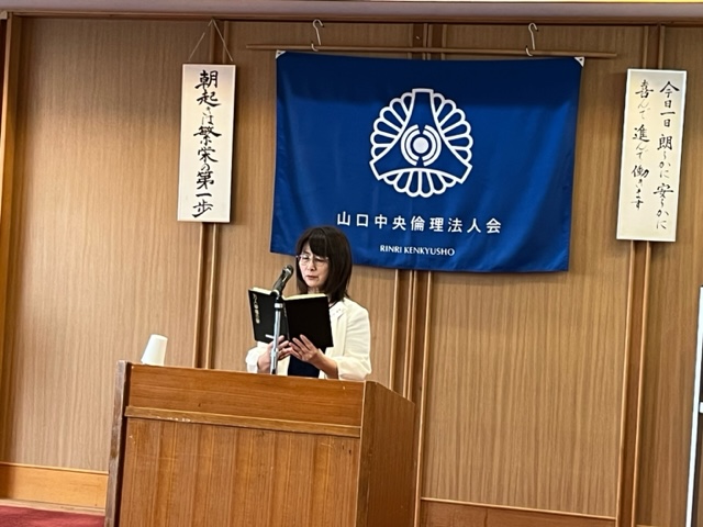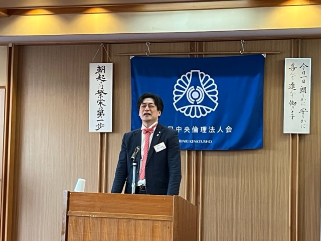 講話では、「倫理の会場は道場。準備をしっかりして、大きな声で失敗を恐れない。失敗こそが自分の成長。目配り、気配り、心配りのススメ」と言うことを学びました。