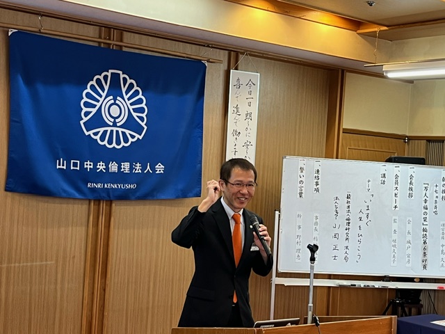講話では、人生はご先祖さまからなっている。彼らのDNAを受け継いでいるので、一度市役所で家系図を出してもらうと良い。また、映画のセリフや歌の歌詞から人生の意義などを考えました。人生を形成するのは、運命と因果応報です。ゴミ拾いなど特にを積みましょうと言うお話でした。