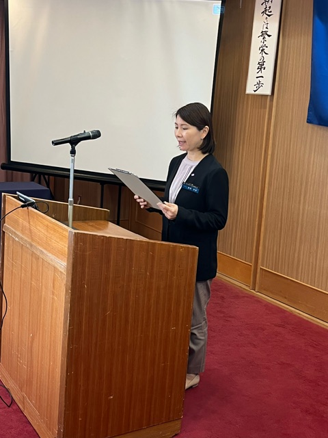 会員スピーチは、嵯峨久美子監査で、車の購入などで出費が重なって大変な時に、みなさんから野菜などいろいろな物いただいて、小さな幸せが待っていたと言うお話でした。