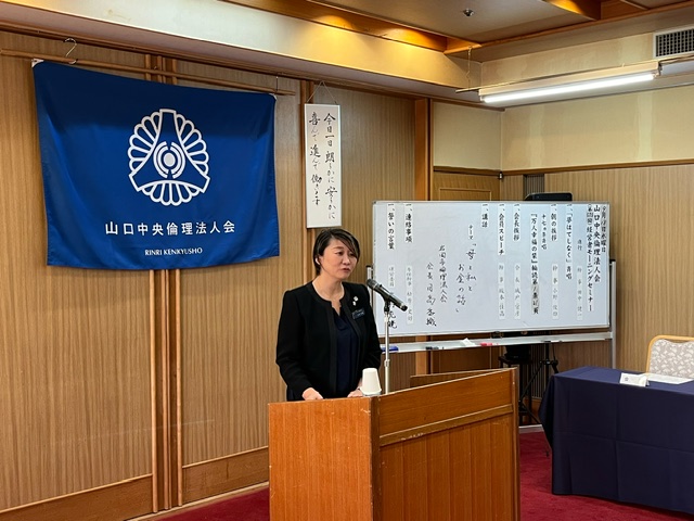 講話では、倫理法人会に入って、人との縁がとても増えた。倫理指導を受けて、これまでのわだかまりがなくなった。両親との関係が良くなると人生自体が良くなったと思う。富士研で思い浮かんだ祖母の「大丈夫、大丈夫!」と言う言葉で両親に手紙を書くことが出来た。お墓参りをするとその効果が自分に出て来ますなど、感慨深いお話をいただきました。