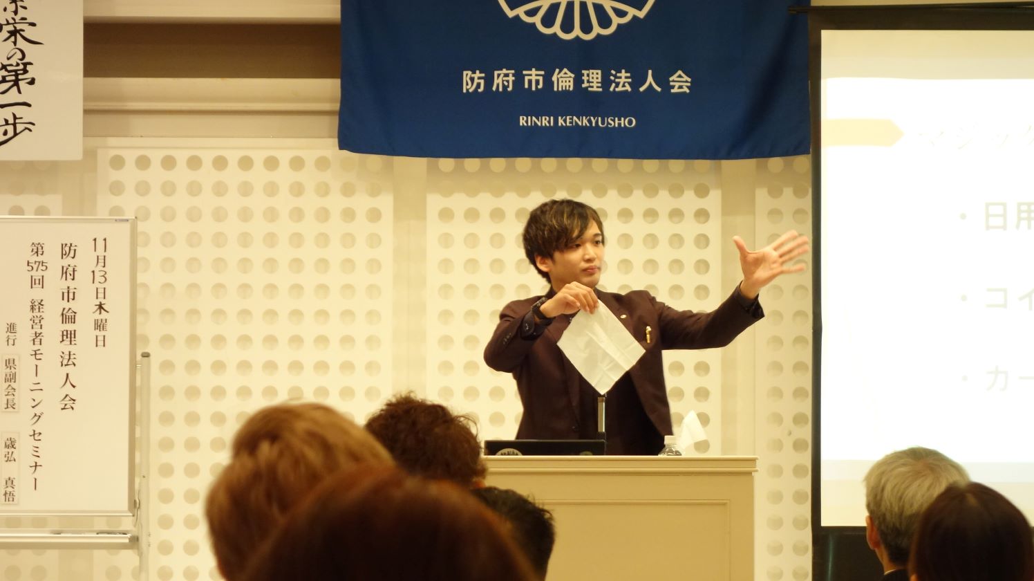 『何の為に』という自分の思いを相手に伝えることの大切さを改めて実感することができました。富士研での学びを交えながらお話しいただき、エンターテイメントと倫理の共通点、そして『真っ直ぐにそろえる』といった“やり方”ではなく、『違和感を消す』という視点に、日本精神の一端を垣間見ることができ、益々日本が好きになりました。また力強い言葉に勇気をいただき”マジシャンようじ“になろうと思われた背景も是非伺ってみたいと感じました。