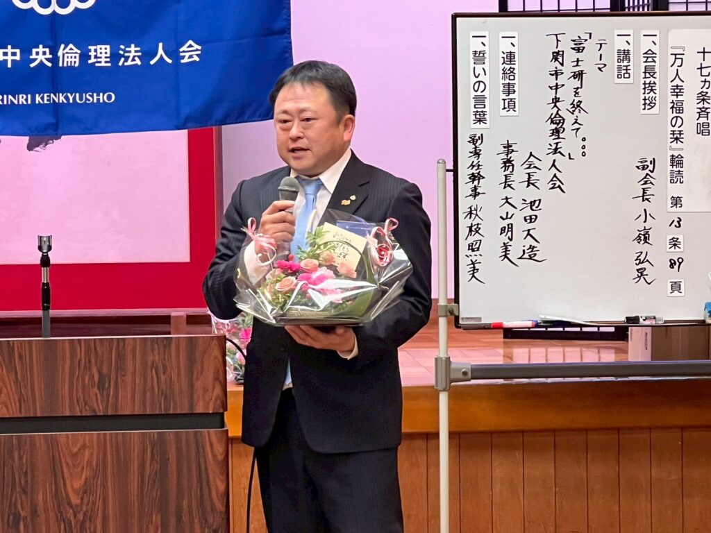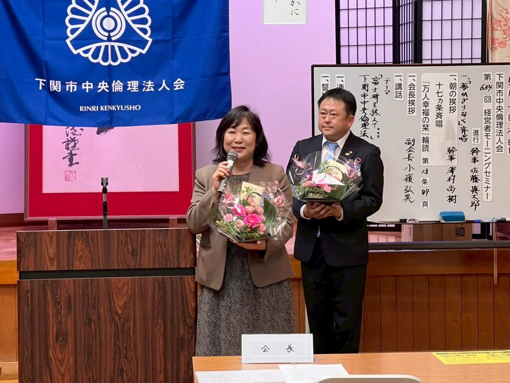 下関市中央倫理法人会 会長 池田大造 氏に、「富士研を終えて…」をテーマに御講話いただきました。