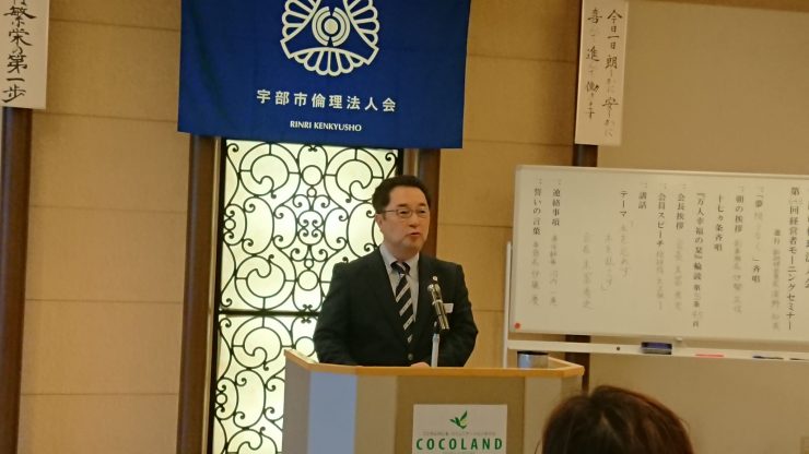 宇部市倫理法人会の立ち上げ直後から、御自身のこれまでの倫理の振り返り、親のありがたみ、仲間のありがたみ、倫理に出会ってからの御自身の変化などをご講話いただきました。