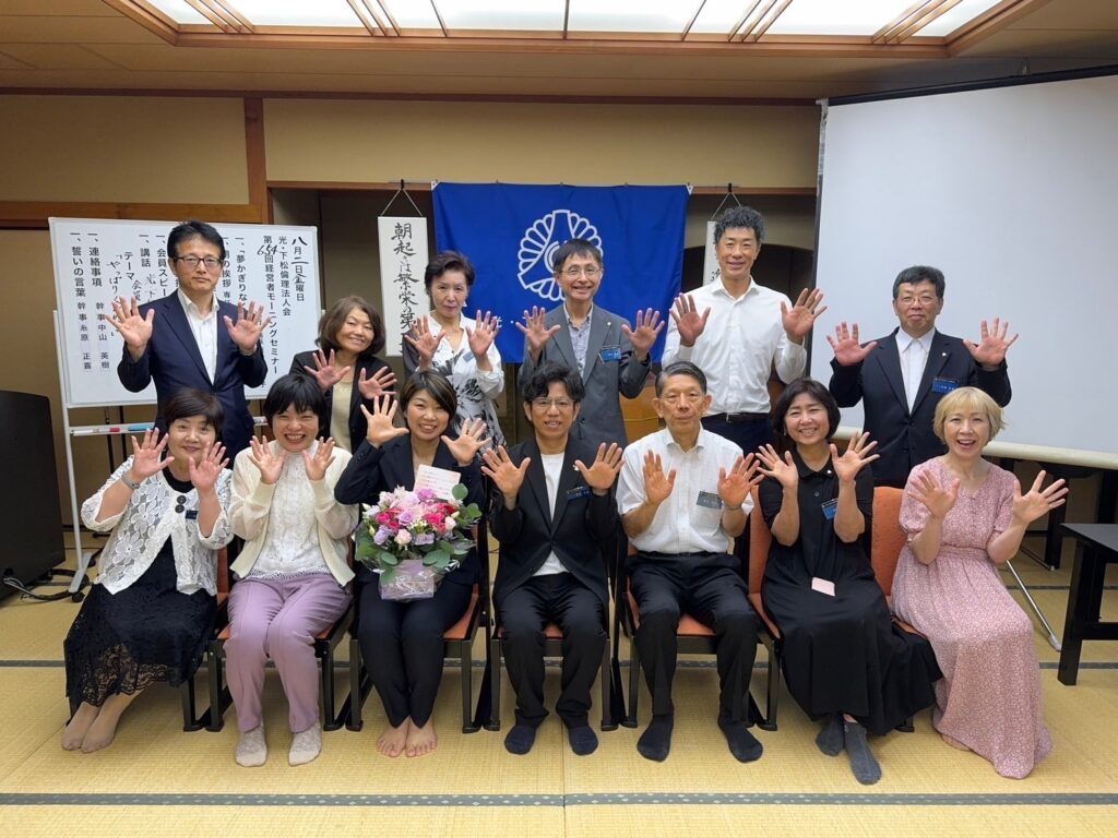 2024年8月2日(金) 第654回MS 講師:下松倫理法人会会員 胡子 愛子 氏 テーマ:やっぱり人が好き