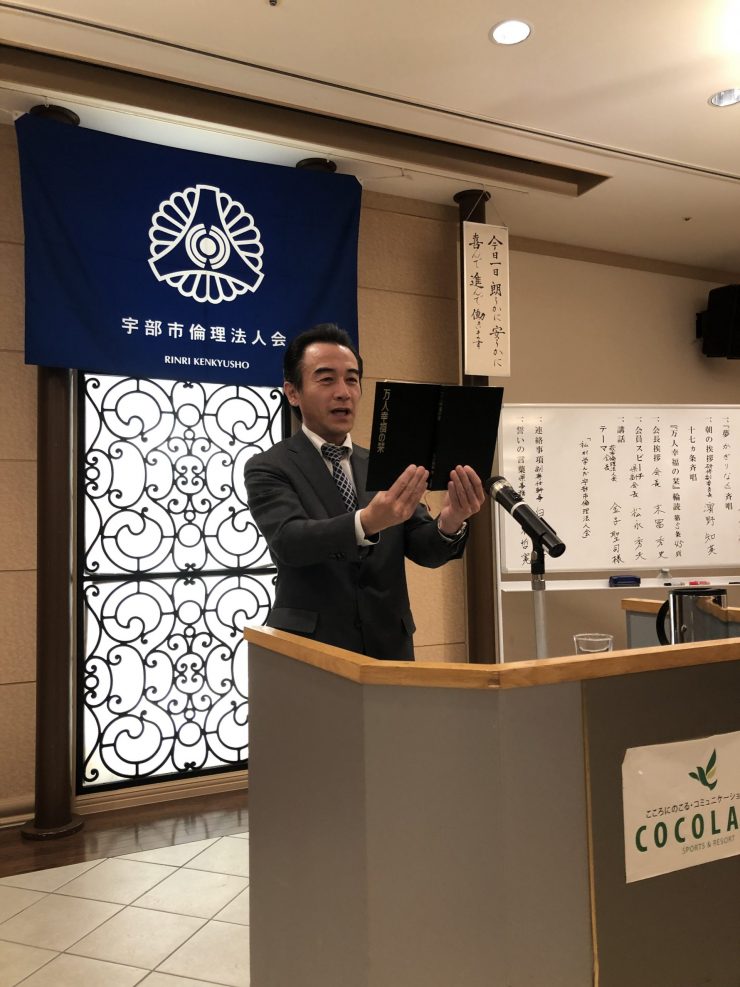 毎回、机上に配布されている「宇部市倫理法人会ニュース」について、ある部分のエピソードを話されました。