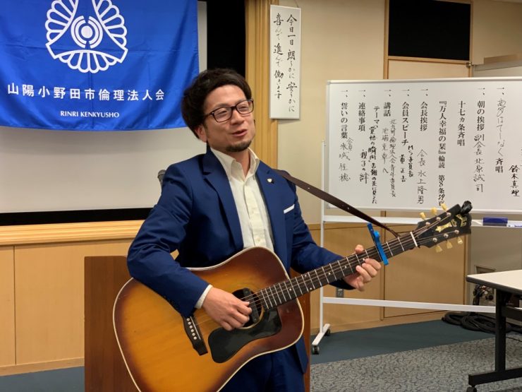 第79回山陽小野田市モーニングセミナーは、北九州市倫理法人会青年委員長 株式会社BESTIE シンガーソングライター 池端克章様に「夢って本当にかなうんです!」と題してご講話いただきました。