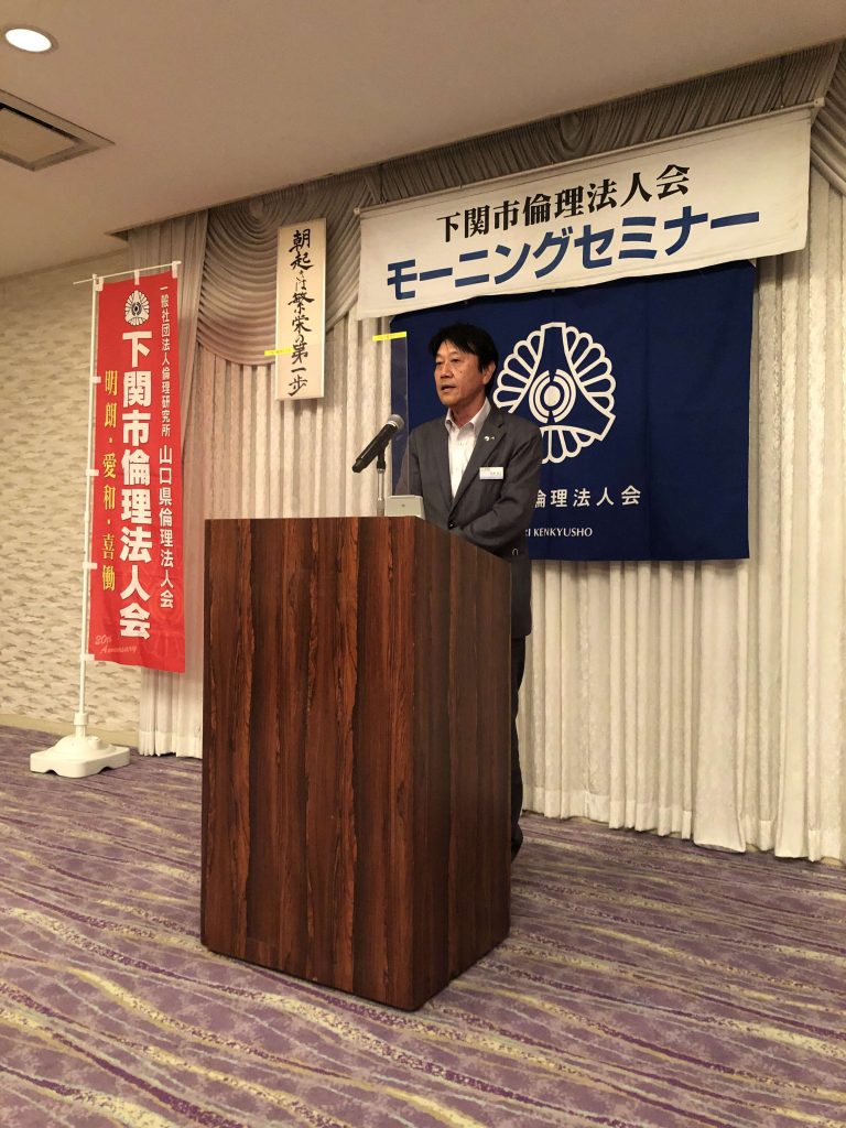 2020.7.15 下関市倫理法人会のモーニングセミナーは、山口県警察官OB 金光 義人 氏 をお迎えし、「我警察官人生」についての講話を拝聴しました。