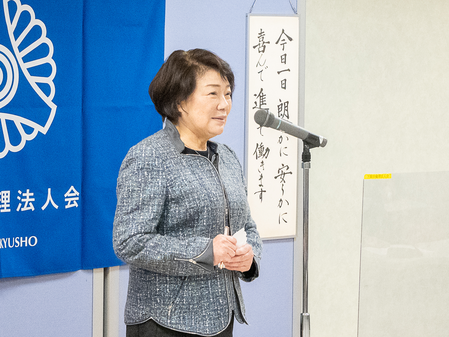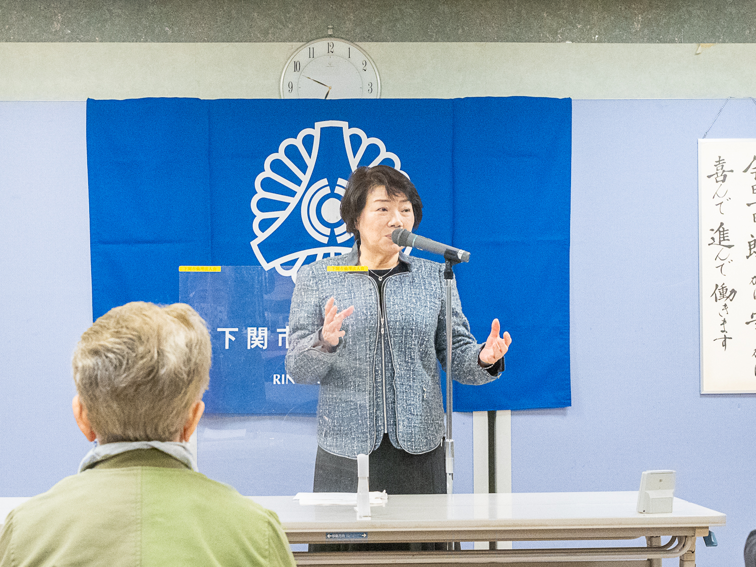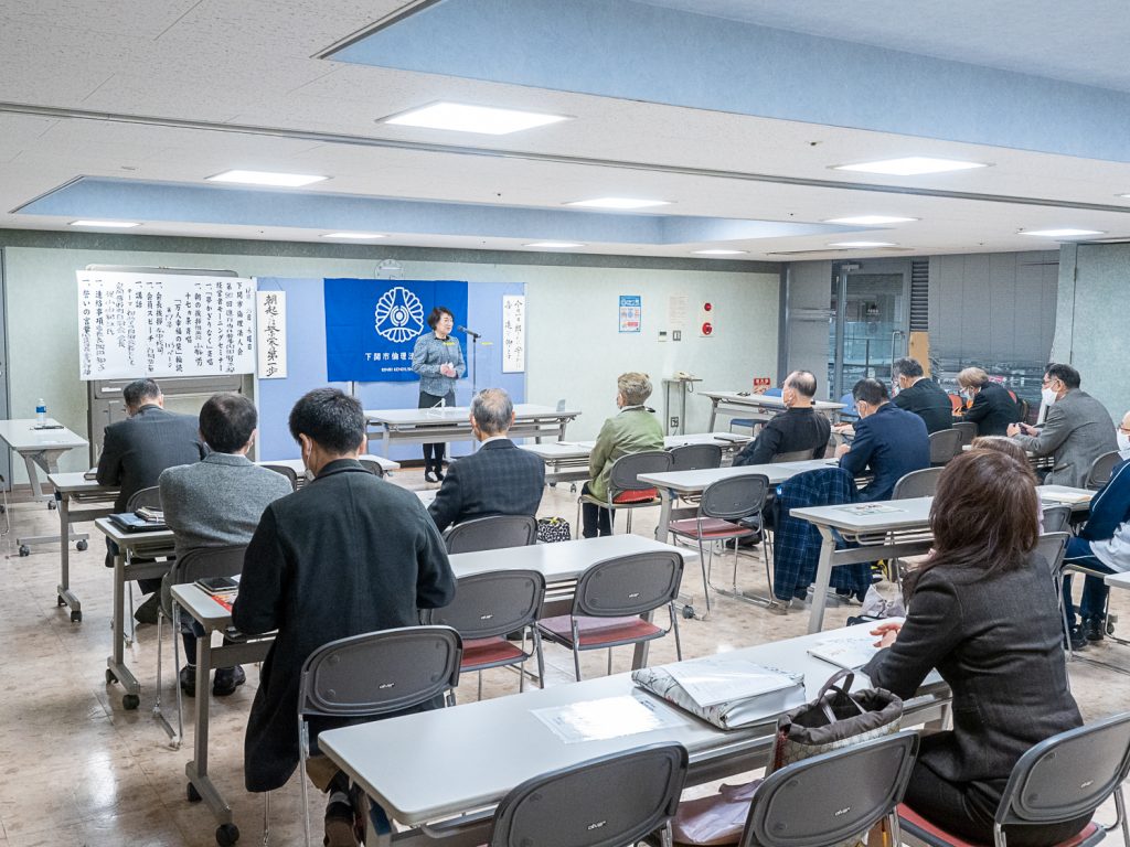 安岡横野町自治会 会長 梶山 由紀江 氏をお迎えし、「初めての自治会長として」についての講話を拝聴しました。