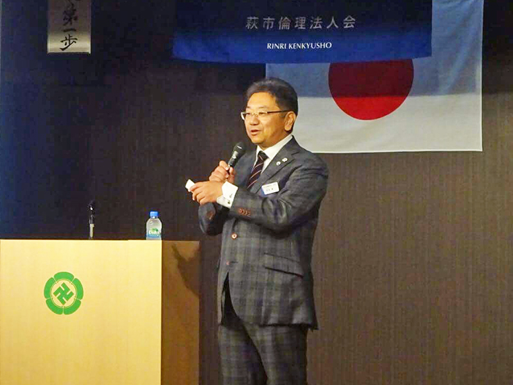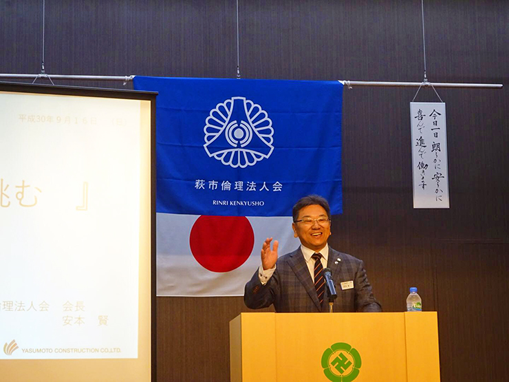 昨日、山口県倫理法人会の役員会が萩市の北門屋敷で開催され、本日のモーニングセミナーでは、他単体から多くの倫友の参加をいただきました。 本日のモーニングセミナーは、山口県倫理法人会役員の参加の中、山口県倫理法人会 会長、安本賢氏に「さらなる“新”に挑む」と題して講話いただきました。 山口県倫理法人会は今年度20周年を迎え、20周年記念事業、記念式典、地区制の導入、他県との交流事業といった「新たな取り組み」についてのお話しをいただき、今後の倫理法人会の活動に期待が膨らみました。