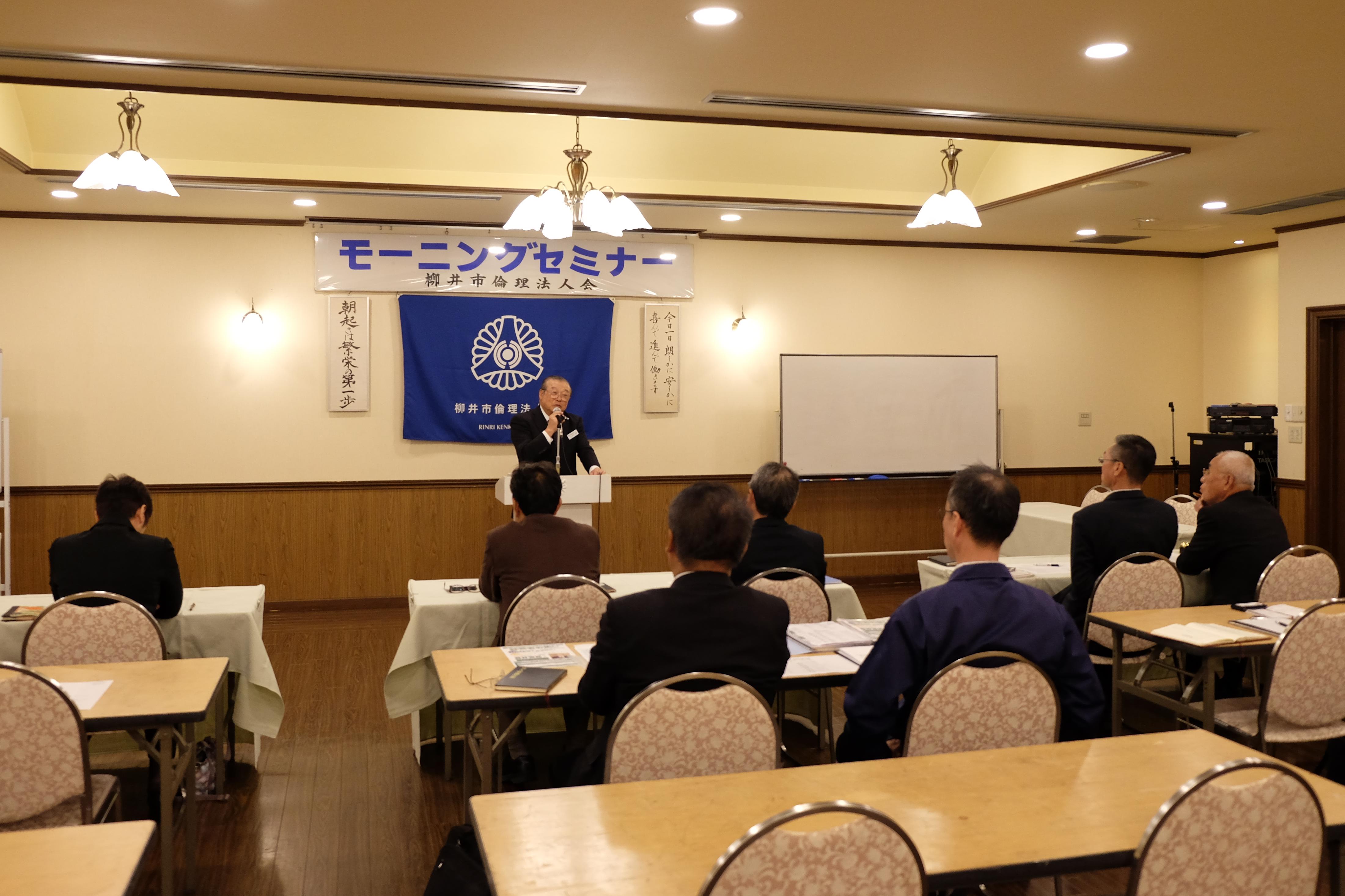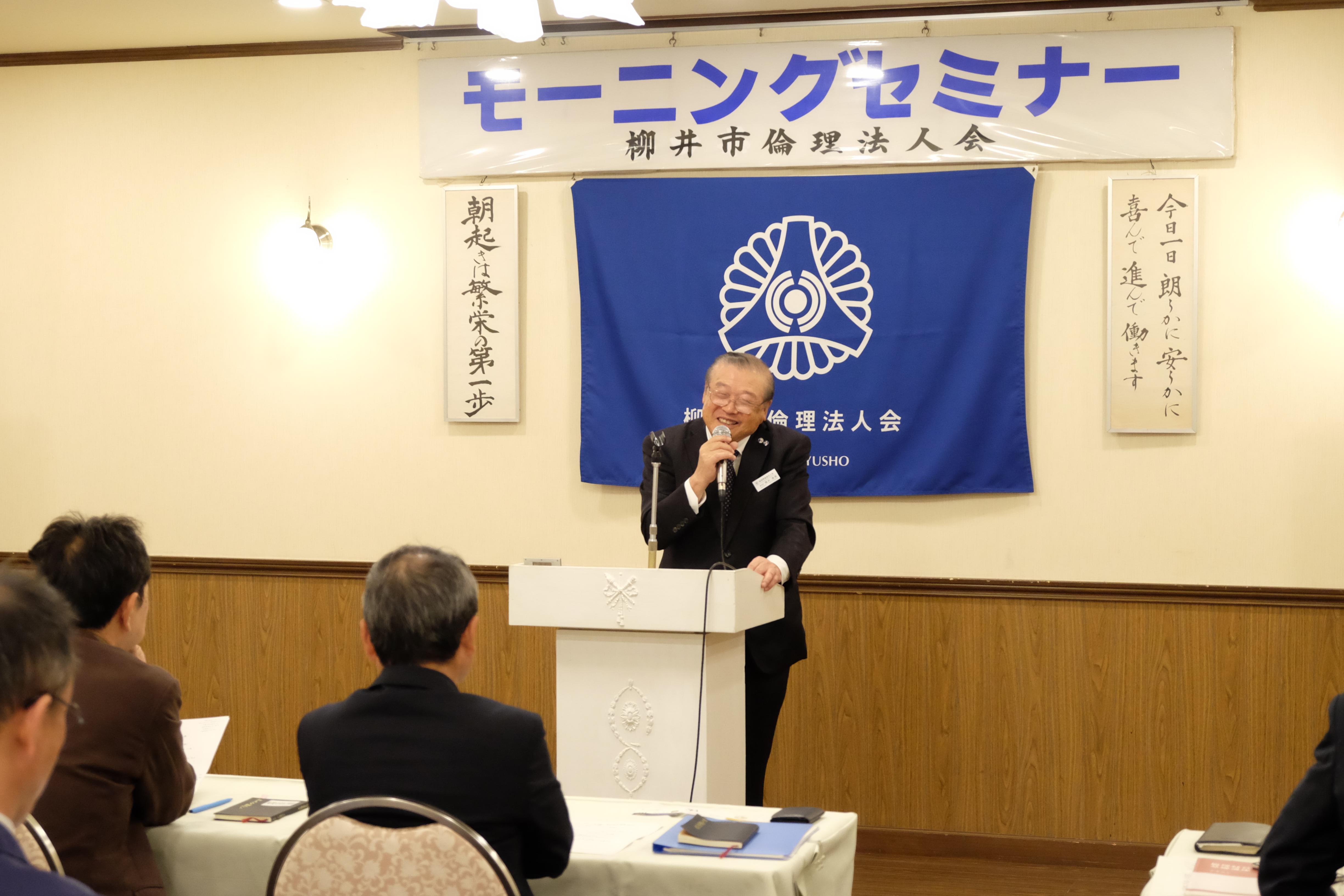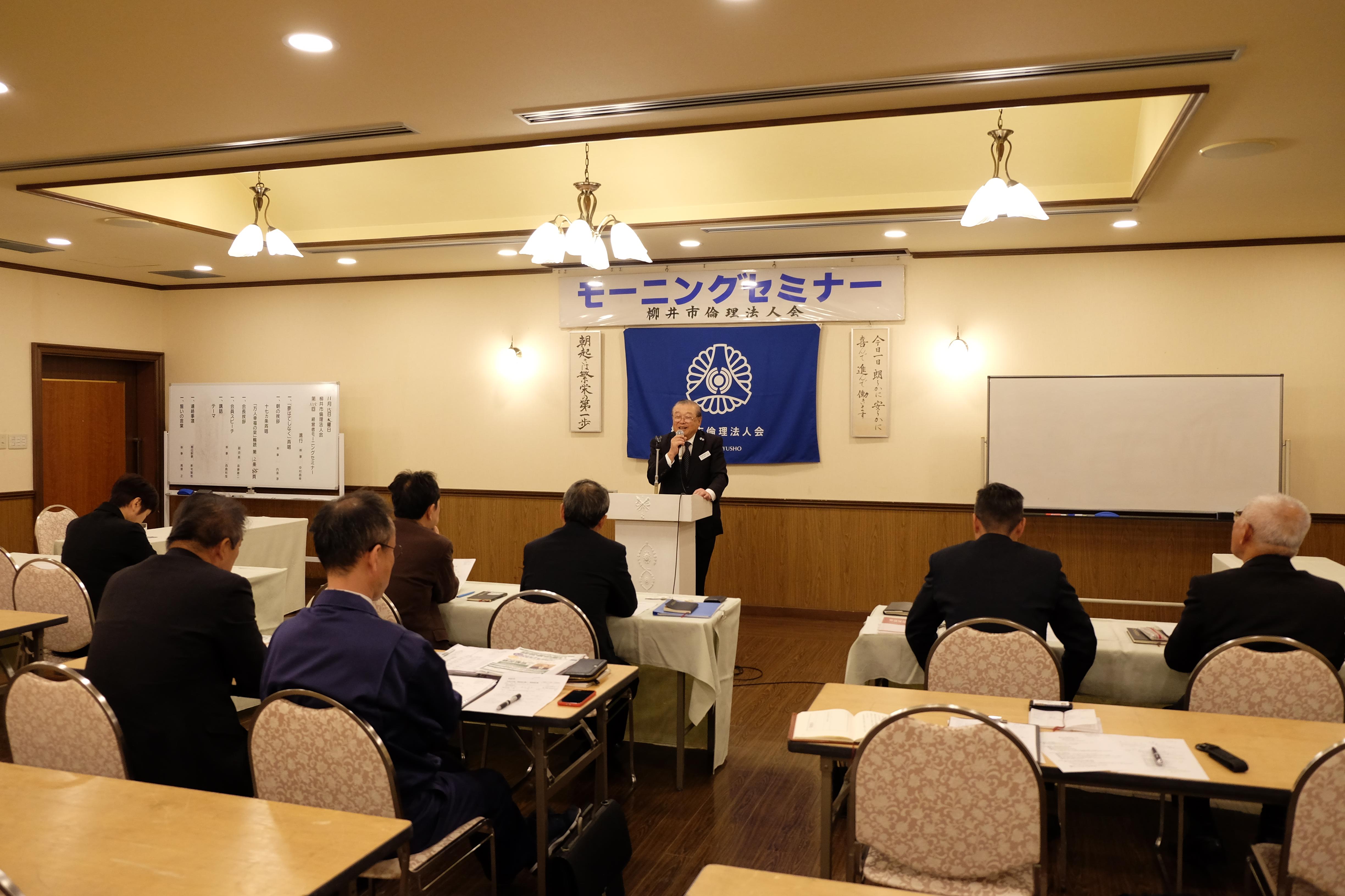 11月21日(火)に行われた経営者の集いは、『実践倫理と倫理経営』と題して、(一社)倫理研究所 森井 満昌 法人レクチャラー((株)創実エージェンシー 代表取締役)の講話を聴きました。