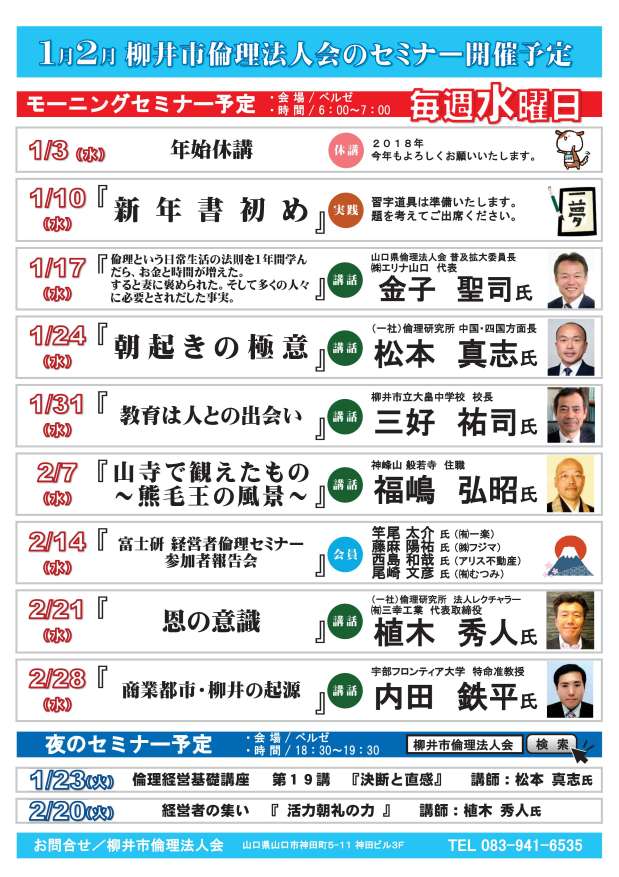 2018年1月1日(月) 1月-2月モーニングセミナー2ヶ月予定表