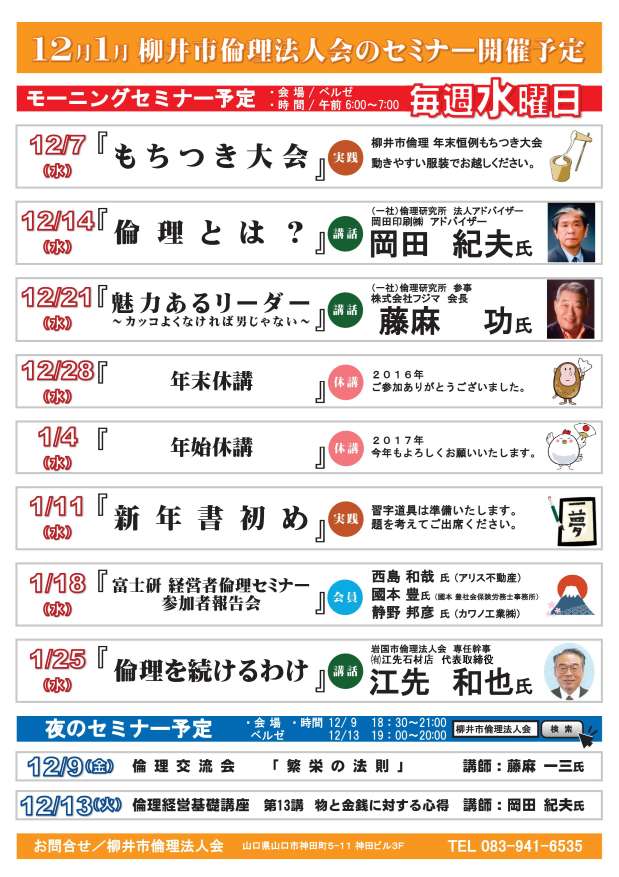 2016年12月1日(木) 12月-1月モーニングセミナー2ヶ月予定表