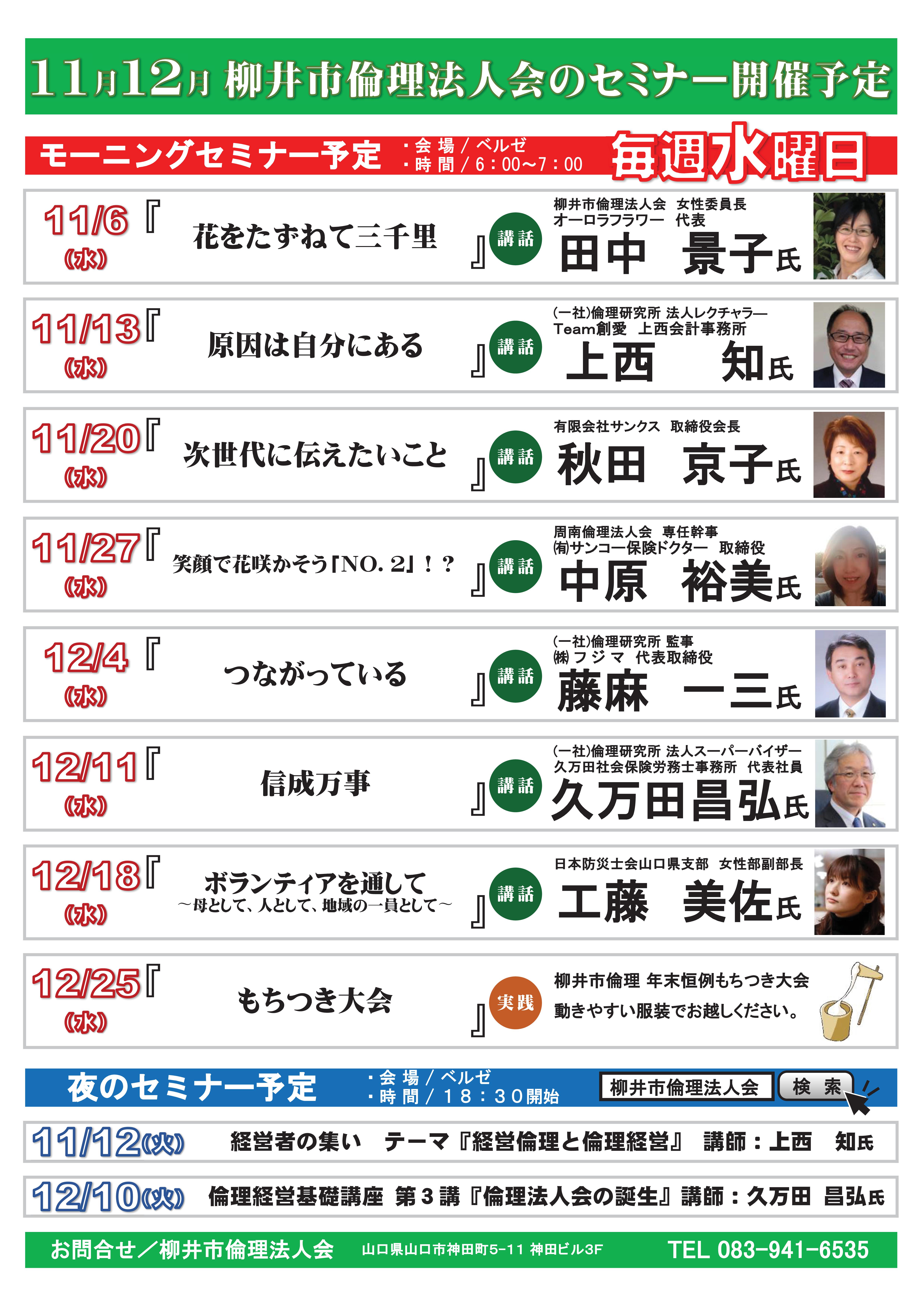 2019年11月1日(金) 11月-12月モーニングセミナー予定表