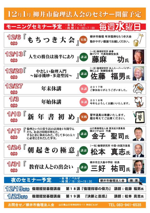 2017年12月1日(金) 12月-1月モーニングセミナー2ヶ月予定表