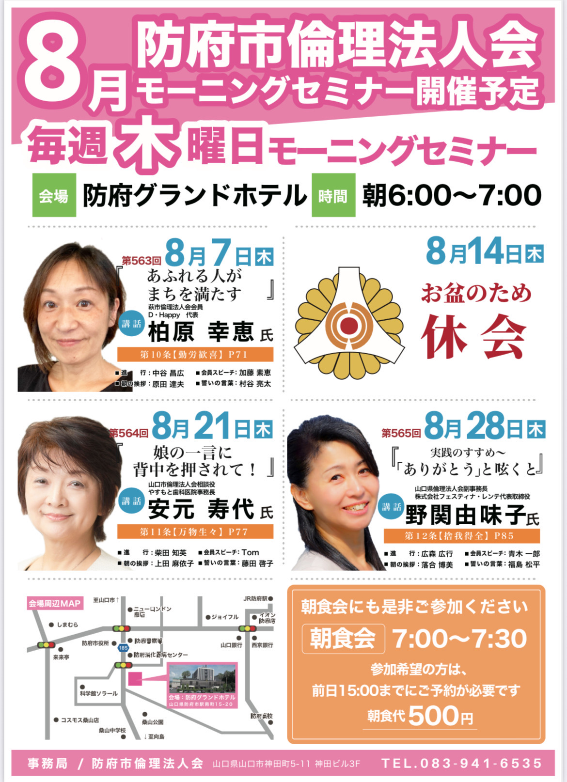 2025年8月3日(日) 8月モーニングセミナー開催予定
