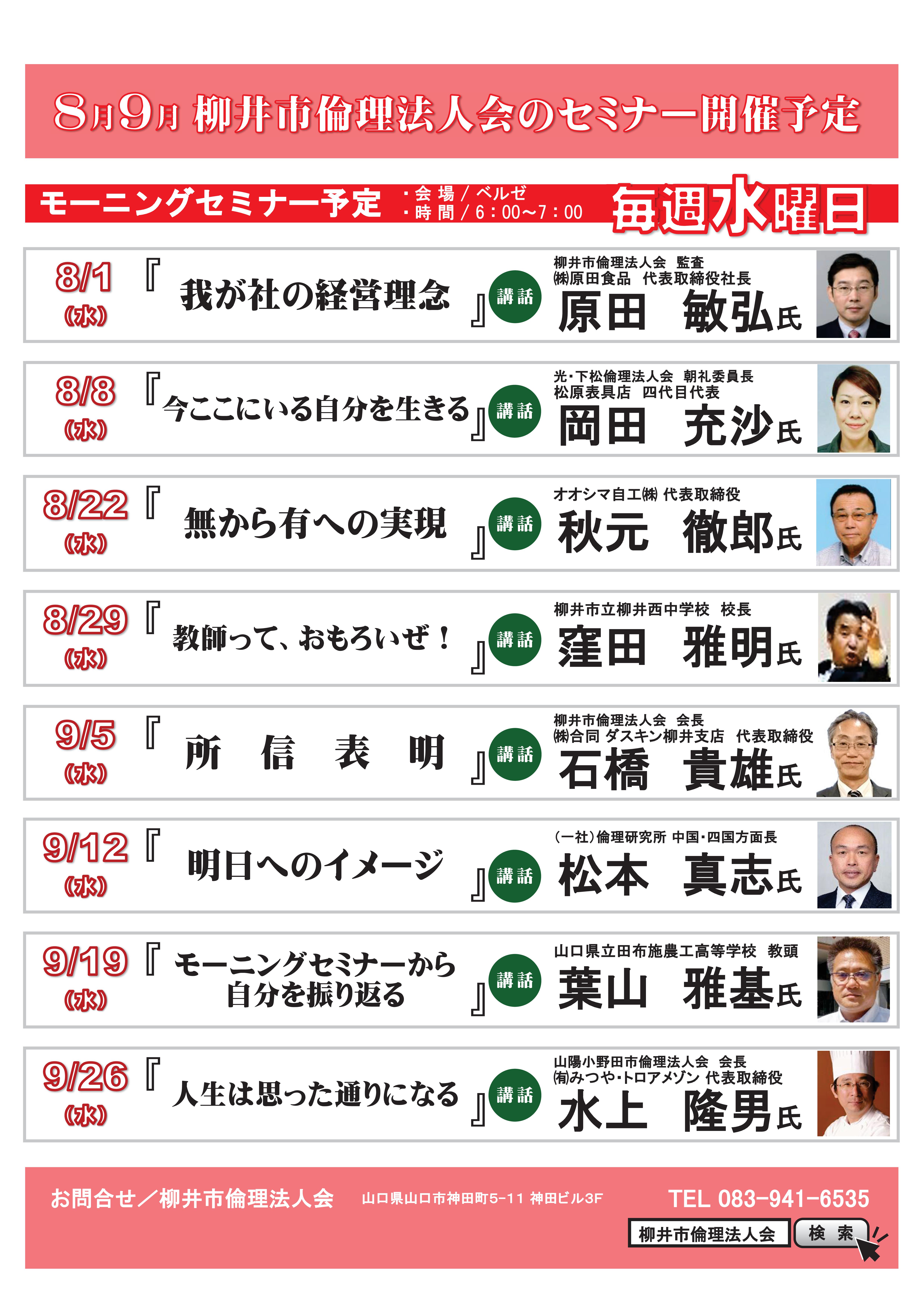 2018年8月1日(水) 8月-9月モーニングセミナー2ヶ月予定表