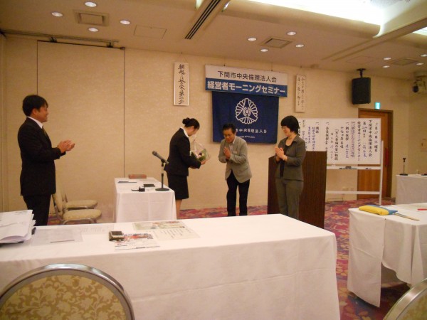 最後に、野久保(旧)事務局 ⇒ 大平(新)事務局への交代ご挨拶を戴き野久保さまへの花束贈呈を行いました。