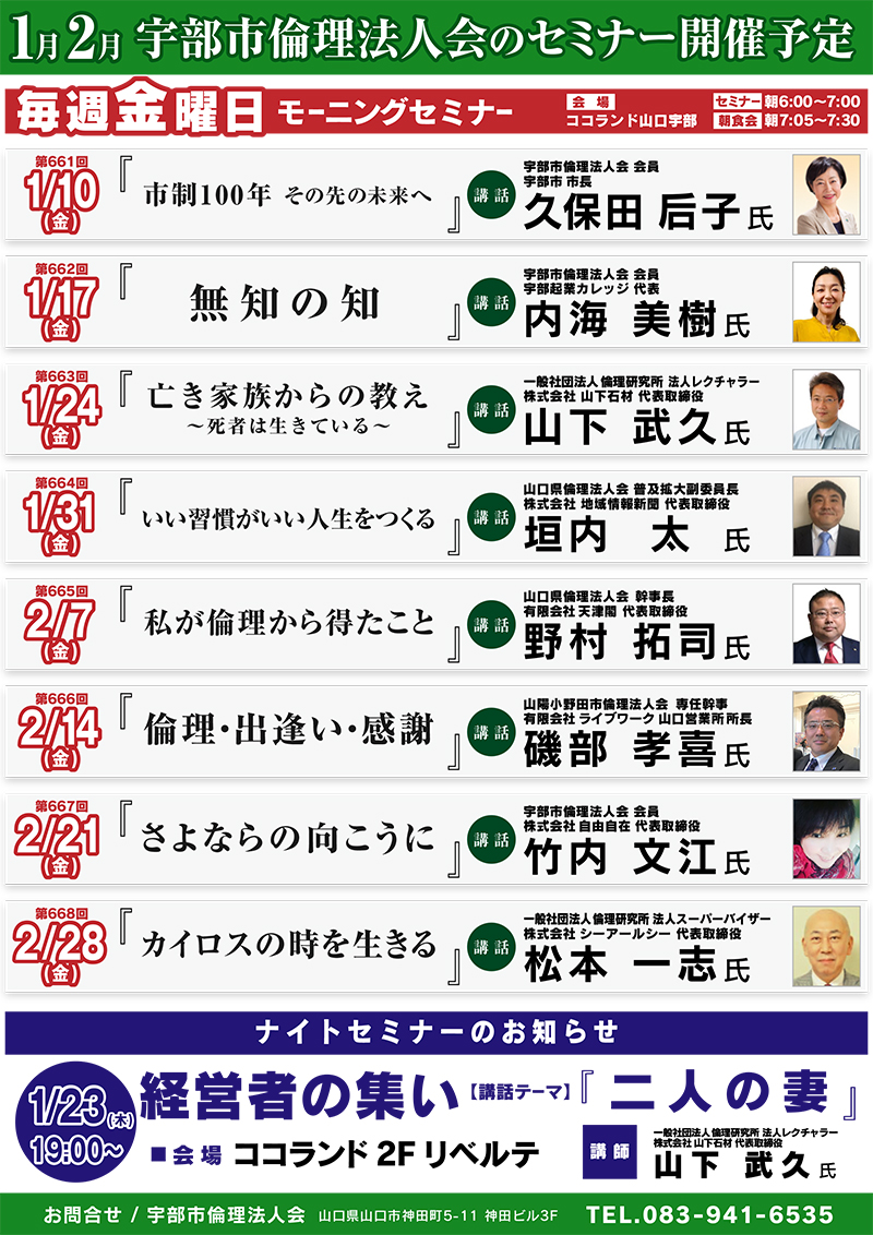 1月2月 宇部市倫理法人会モーニングセミナー開催予定