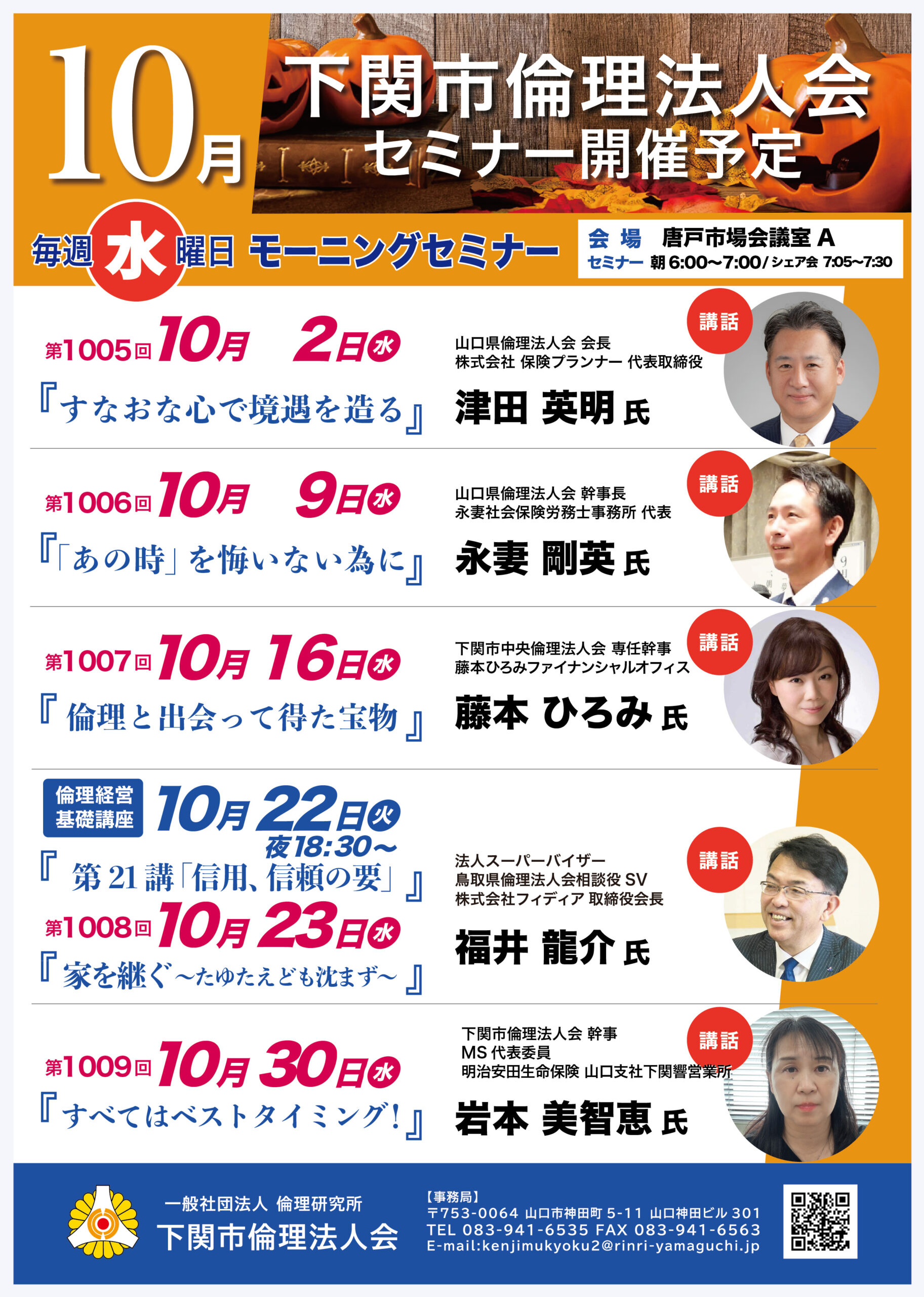 Mセミナー第1007回 MS 講師:藤本 ひろみ 氏(下関市中央倫理法人会 専任幹事 / 藤本ひろみファイナンシャルオフィス) /テーマ:倫理と出会って得た宝物